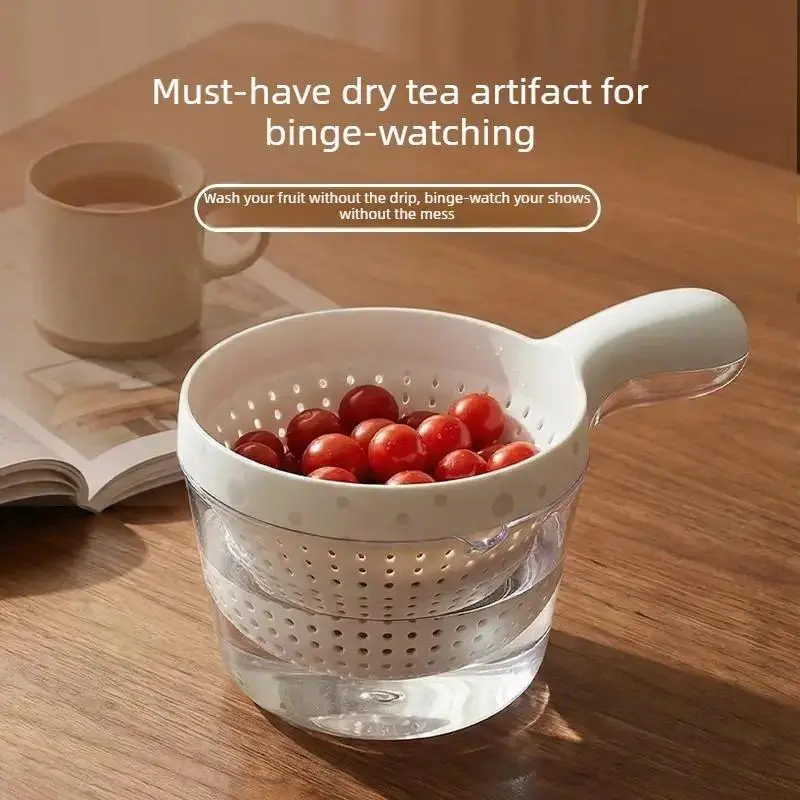 Double-layer fruit washing basket with handle, suitable for washing fruits and blueberries, cute small fruit strainer, a must-have for home use.