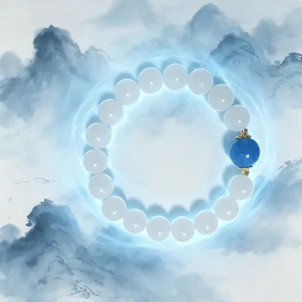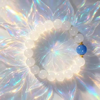 Blue Chalcedony carries gentle Water energy, calming restless emotions, easing the pain of heartbreak, reducing anxiety and overthinking, and soothing your heart chakra. White Jade stabilizes your aura, blocks negative energy from past relationships, and helps you cut off toxic ties and let go of old wounds.