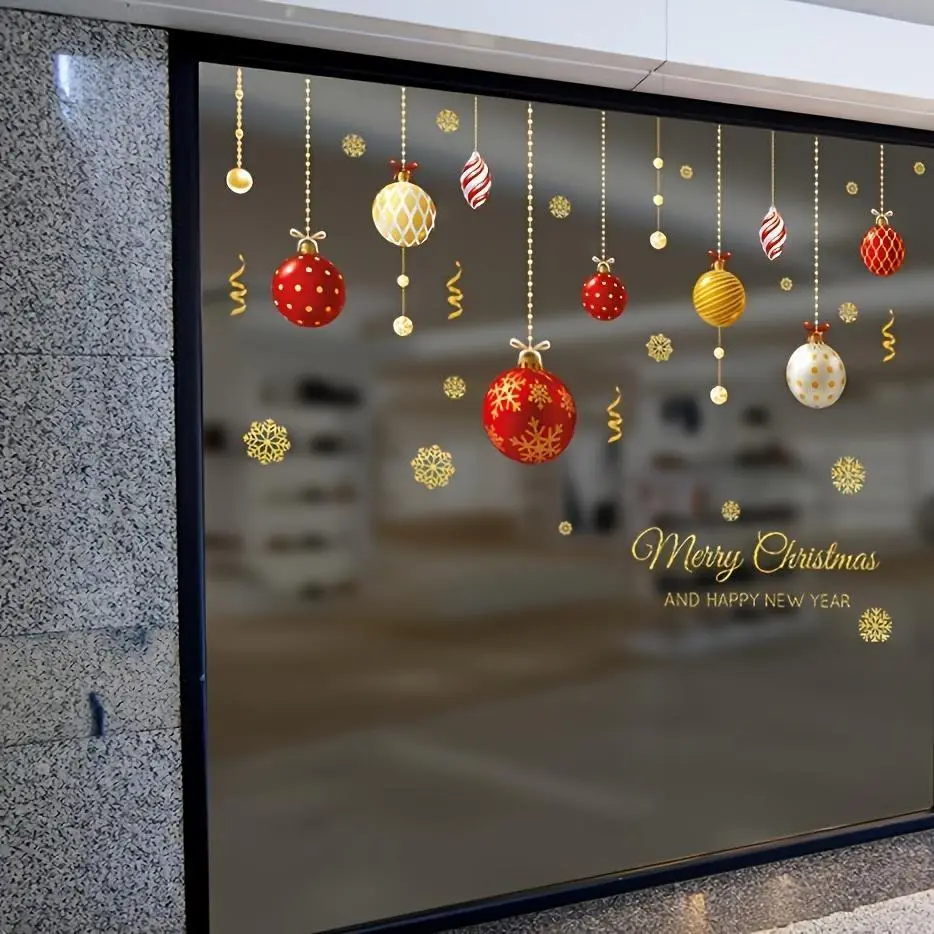 1pc Reusabl Window Stickers - Cartoon Snowflake & Merry Christmas Decals,White & Red DIY Holiday Decor for Glass Doors & Windows