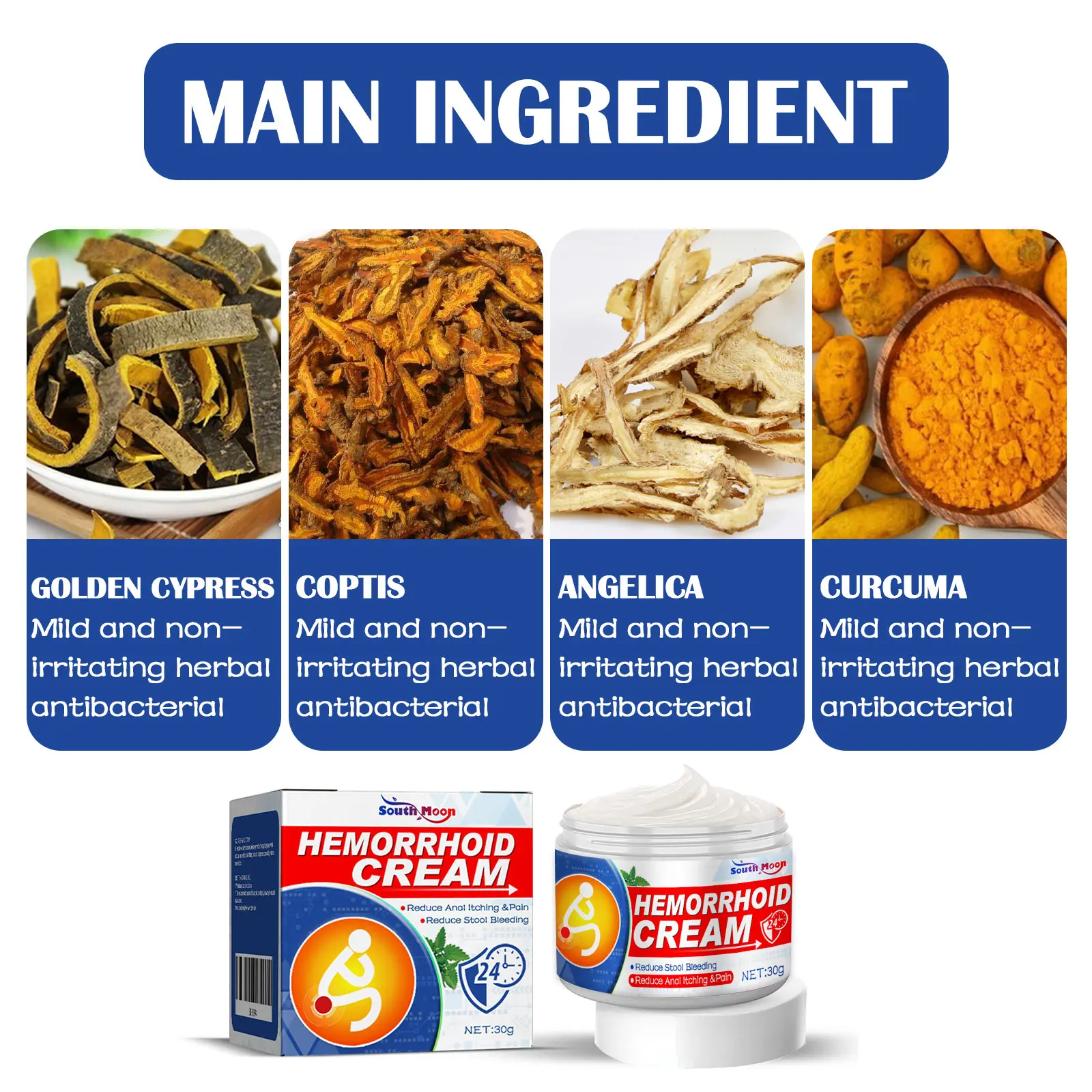 South Moon Hemorrhoid Cream — Relieves hemorrhoids, reduces skin tags/small growths, alleviates swelling and irritation; mixed formula for internal and external hemorrhoids; anal soothing care cream