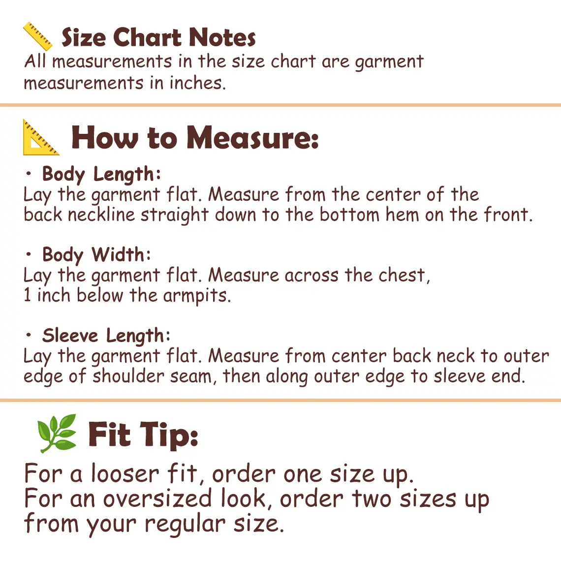 Shirt Specifications & Sizing