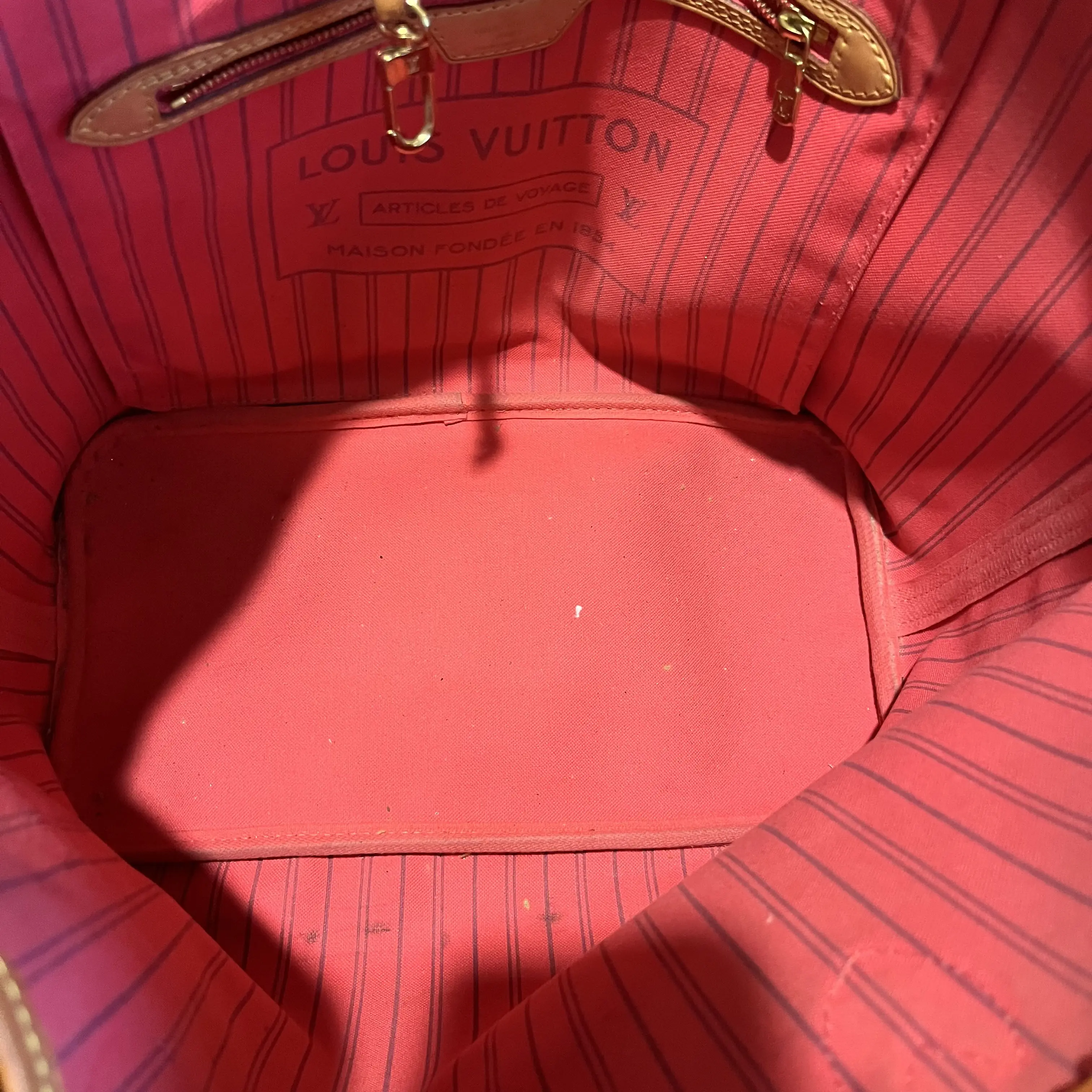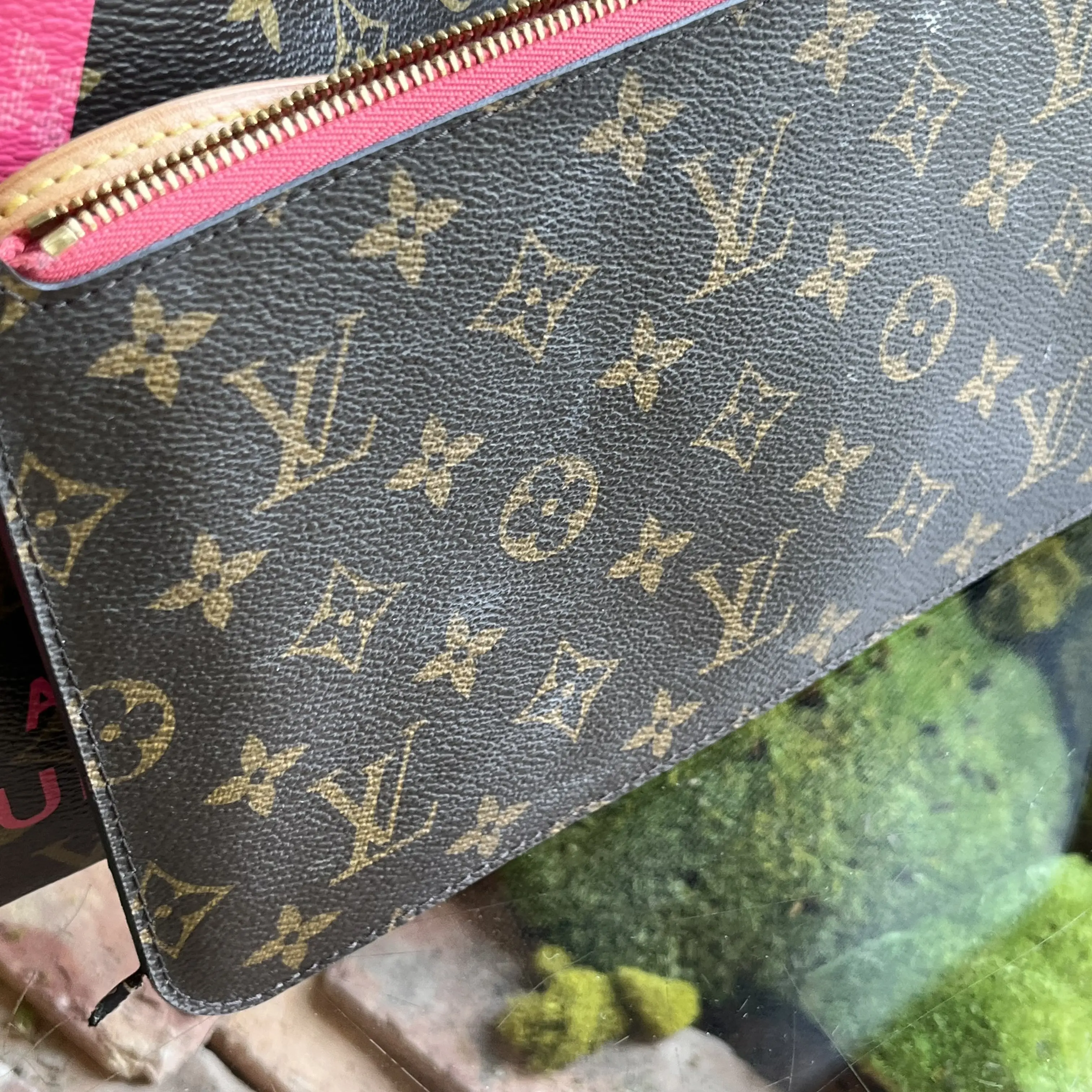 ·Handle + Vachetta: The vachetta leather has developed a patina with areas appearing darker, soiling, gentle lifting, rubbing. scratches, creasing and water/oil spots.
