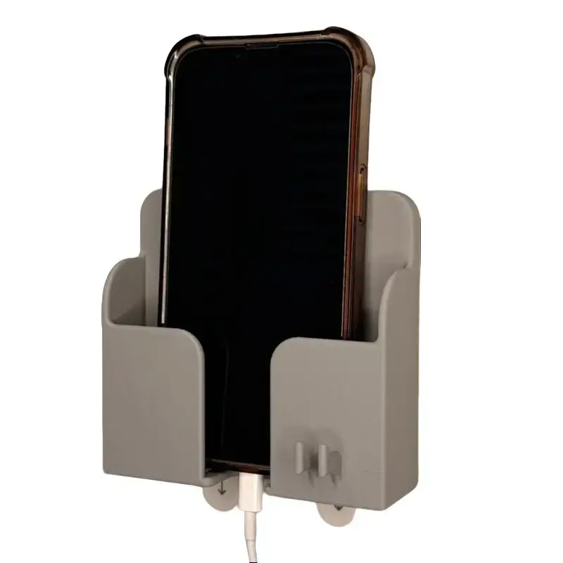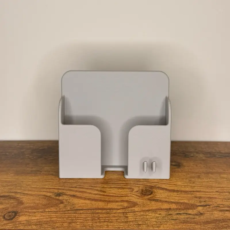 Keep your phone off cluttered surfaces and always within reach with this sleek wall-mounted phone holder. Thoughtfully 3D printed for precision and durability, this minimalist dock provides a dedicated place to store and charge your phone while keeping cables neat and organized.