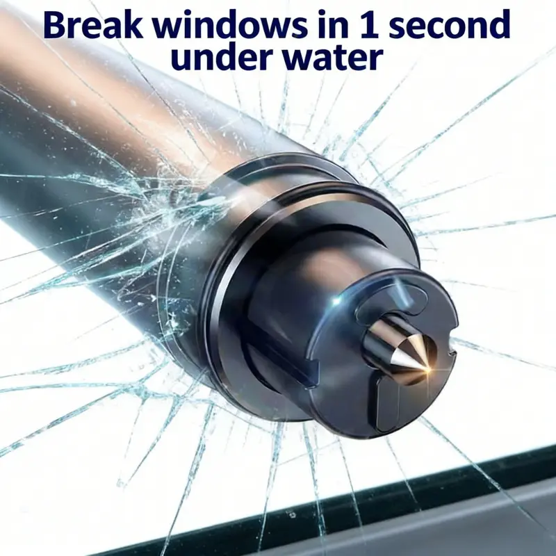 Vehicle Window Breaker: This 2-in-1 safehammer glass breaker has a built-in high-pressure spring and a sturdy tungsten steel blade with a hardness of 55. Along with a 20KGF impact force can break the solid window glass in an instant. Note: Metal Tip Stays Inside The Tool - Only Springs Out When Breaking Glass.