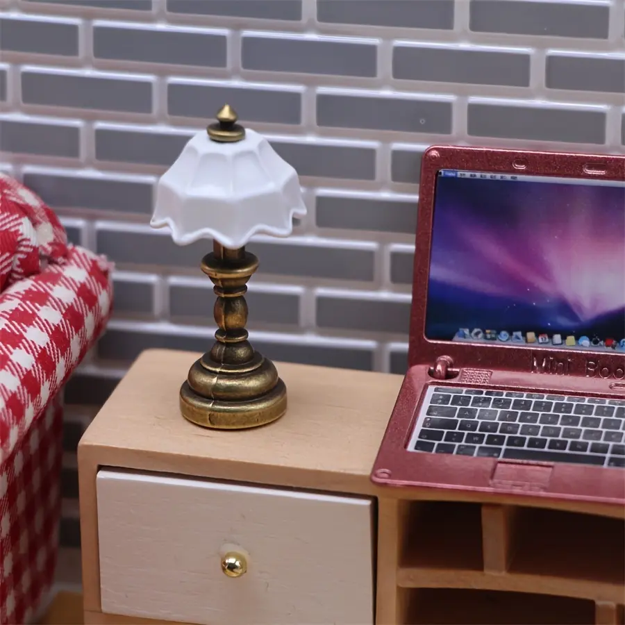 2pcs Dollhouse Mini Vintage Metal Desk Lamp Model, Miniature Home Scene Light Prop, Simulated Bedroom Nightstand Lamp, Tiny House Decor, Pocket Scene DIY Small Part
