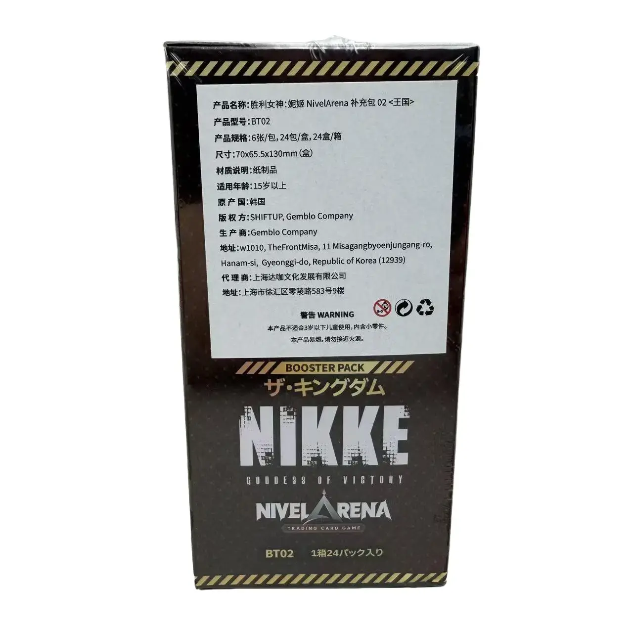 Elevate your collection with this factory-sealed NIKKE: Goddess of Victory booster box. Officially licensed by Shift Up, this BT02 "Kingdom" display box is a must-have for TCG collectors and fans of the hit game. Each box contains 24 booster packs (6 premium trading cards per pack).
