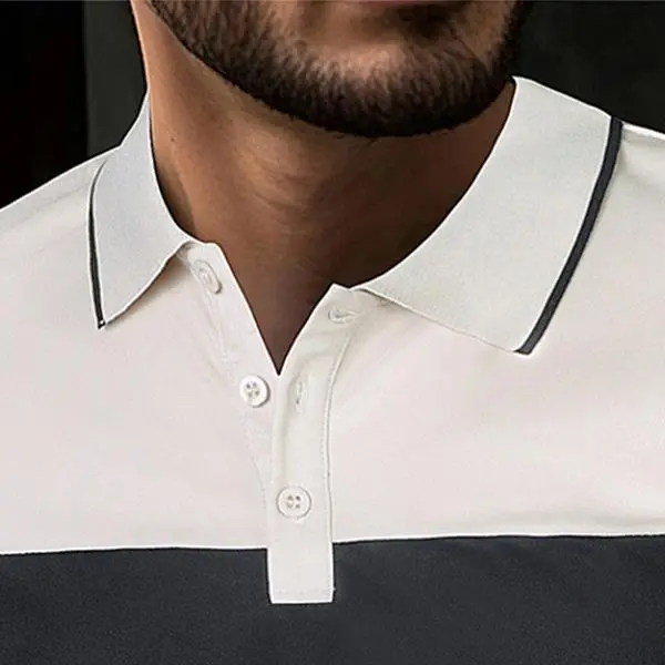 A slim-fit Polo shirt designed specifically for modern men, featuring color-block panels and combining high-quality quick-dry fabric with a trendy color-block design and practicality for various situations. Whether for business commuting, golf, or everyday casual wear, this polo shirt effortlessly handles any situation—a premium piece that elevates your wardrobe.