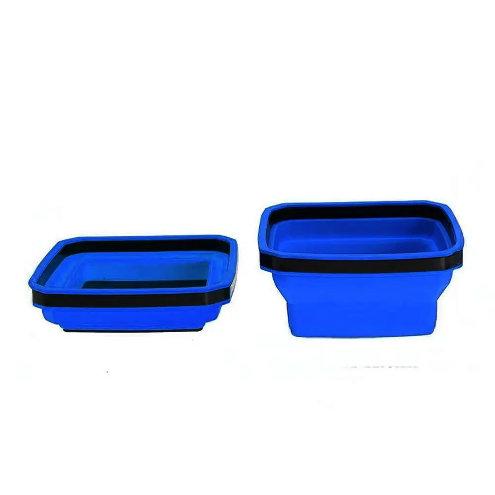 Square silicone foldable magnetic parts tray — strong magnet version; hardware tool parts box; silicone tool tray