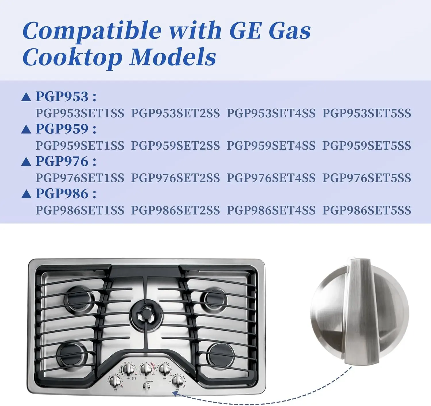 ·【Compatible Stove Models】WB03X25796 gas cooktop knob compatible with ge range surface burner models PGP953SET1SS, PGP986SET1SS, PGP959SET1SS, PGP953SET5SS, PGP953SET2SS, PGP953SET4SS, PGP959SET5SS, PGP959SET2SS, PGP959SET4SS, PGP976SET5S , PGP976SET1SS, PGP976SET2SS, PGP976SET4SS, PGP986SET5SS, PGP986SET2SS, PGP986SET4SS etc.
