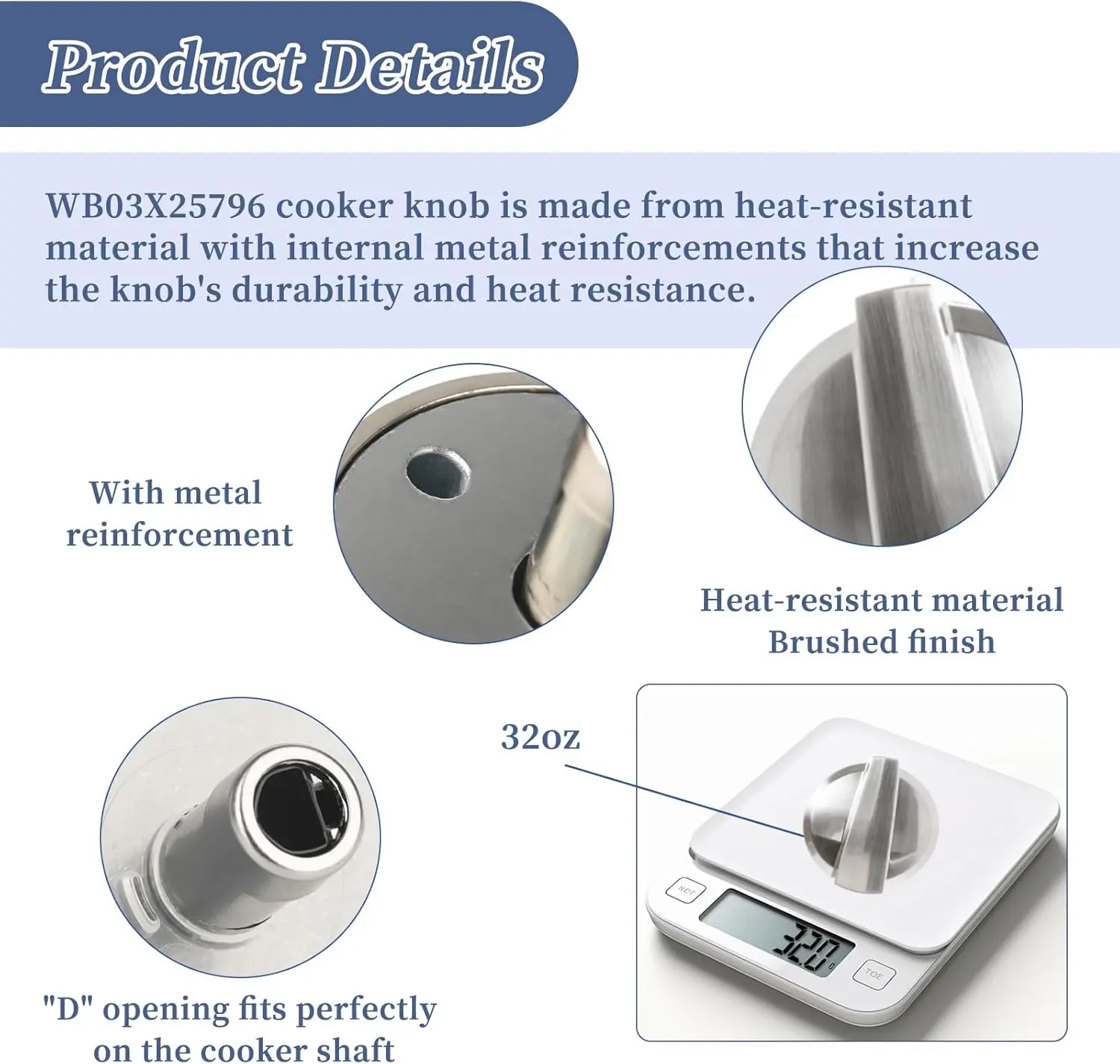 ·Cooktop Range knobs is internally reinforced with a metal plate that increases the life and heat resistance of the knob.