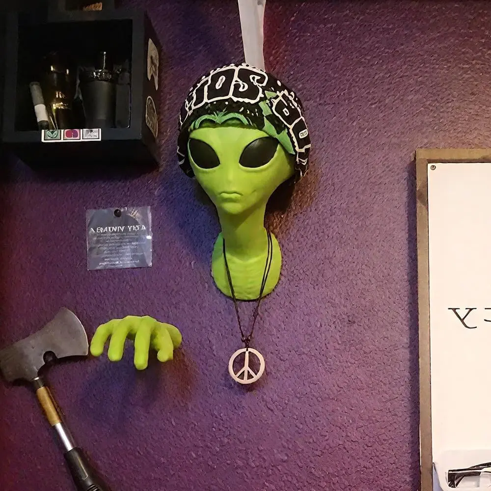 Transform your living space with this captivating Alien Wall Sculpture, a striking piece of contemporary home decor that demands attention. This distinctive wall art brings an otherworldly element to any room, featuring an imaginative interpretation of extraterrestrial design. The sculpture creates a bold statement piece that sparks conversation and adds intrigue to your wall space. Perfect for sci-fi enthusiasts, modern art lovers, or anyone seeking to add a unique dimensional element to their decor. The wall-mounted design makes installation straightforward while creating a dramatic visual impact. Whether displayed in your living room, office, or entertainment space, this alien-themed sculpture adds depth and character to your interior design. Its artistic construction brings texture and visual interest to plain walls, making it an ideal focal point for contemporary and eclectic design schemes.