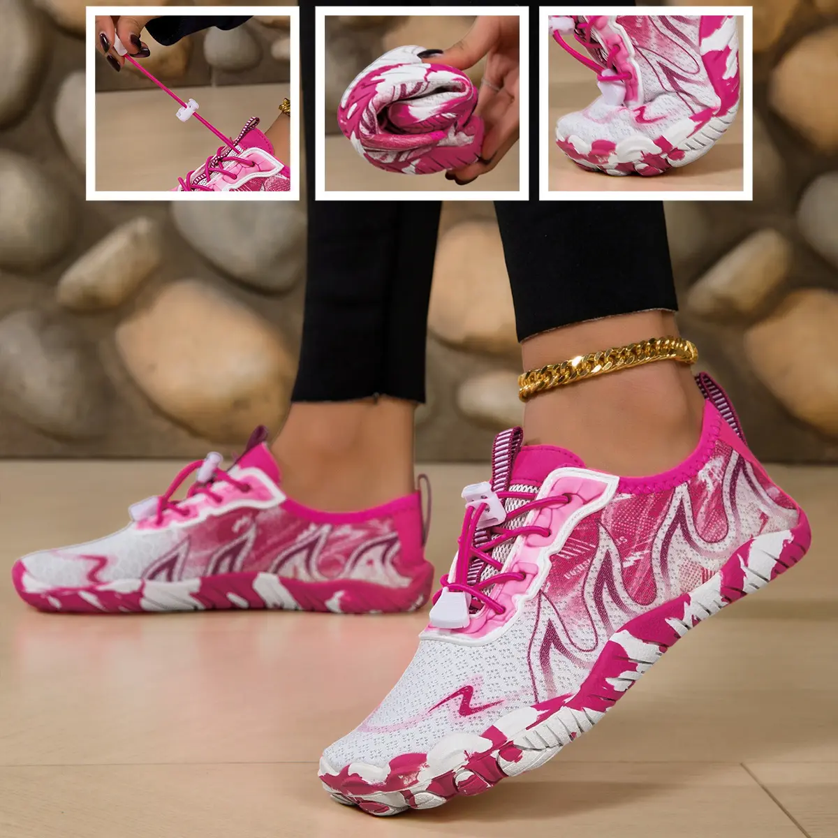 Women's Quick-Dry Water Shoes - Non-slip, Lightweight and Breathable Barefoot Shoes, Fitness Yoga Shoes, Multifunctional Training Shoes Vibrant Pink, Purple Stripes, Black Stripes Design for Swimming, Surfing, Yoga and Summer Outdoor Activities,