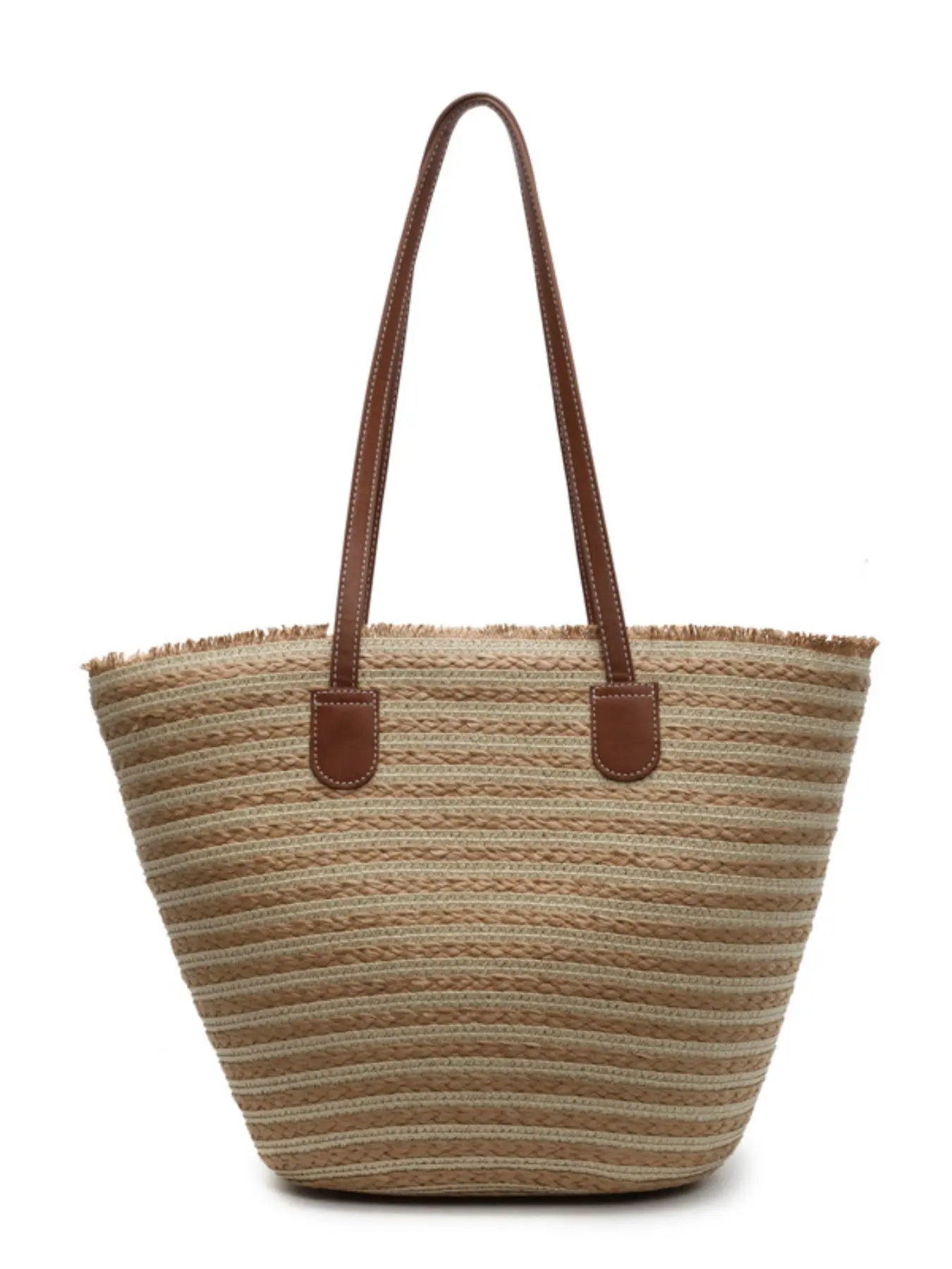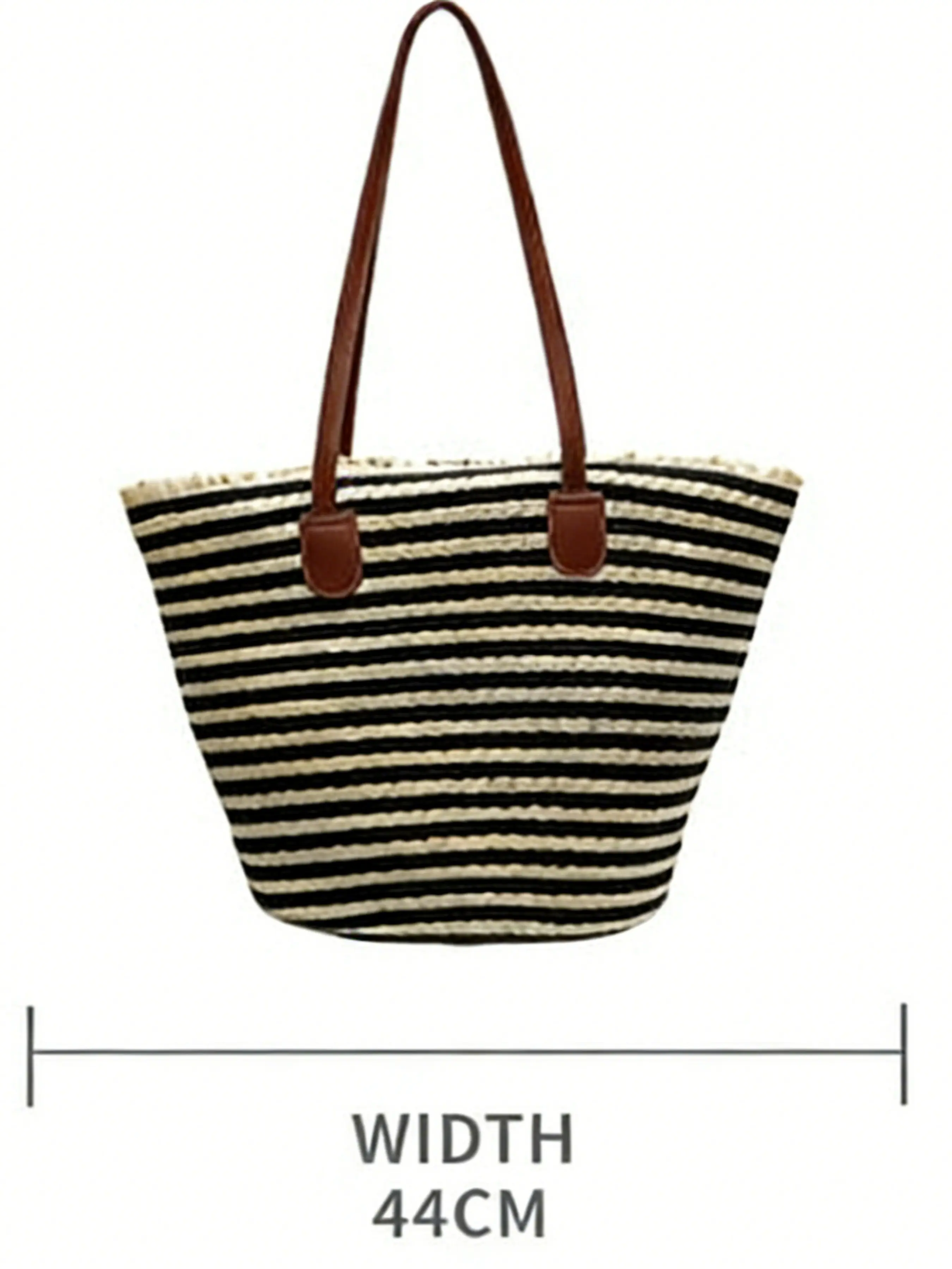 2026 New Casual Simple Large Capacity Bag, Beach Vacation Straw Basket Bag, Striped Shoulder Tote Bag, Elegant Style
