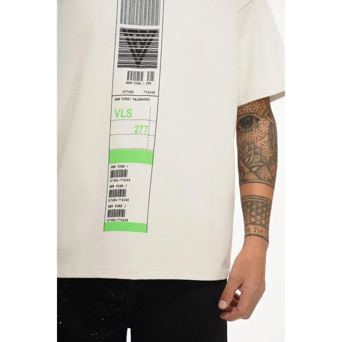 SEO Keywords: VALABASAS Baggage Claim tee cream, VLBS-VT1-1075, cream graphic t-shirt, streetwear cream tee, men’s designer cream shirt, printed tee cream, VALABASAS Baggage Claim shirt