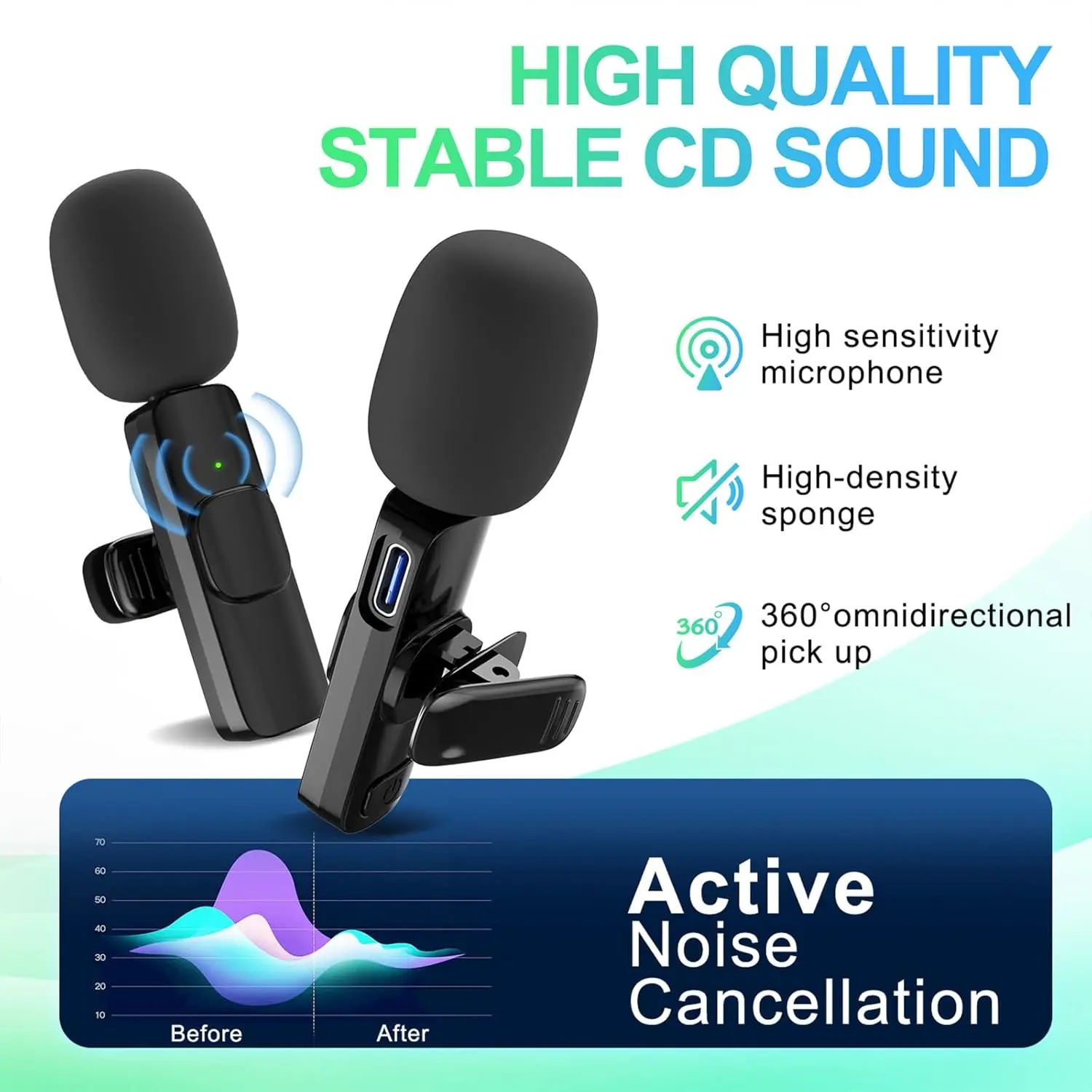 All-Around Sound Capture: The wireless lapel microphone comes with a high-density foam windscreen and a highly sensitive mic, along with an intelligent noise reduction chip to reduce background interference. Regardless of the surrounding environment, our device captures every detail of the sound clearly. The package includes two wireless microphone, allowing for simultaneous recording by two users.