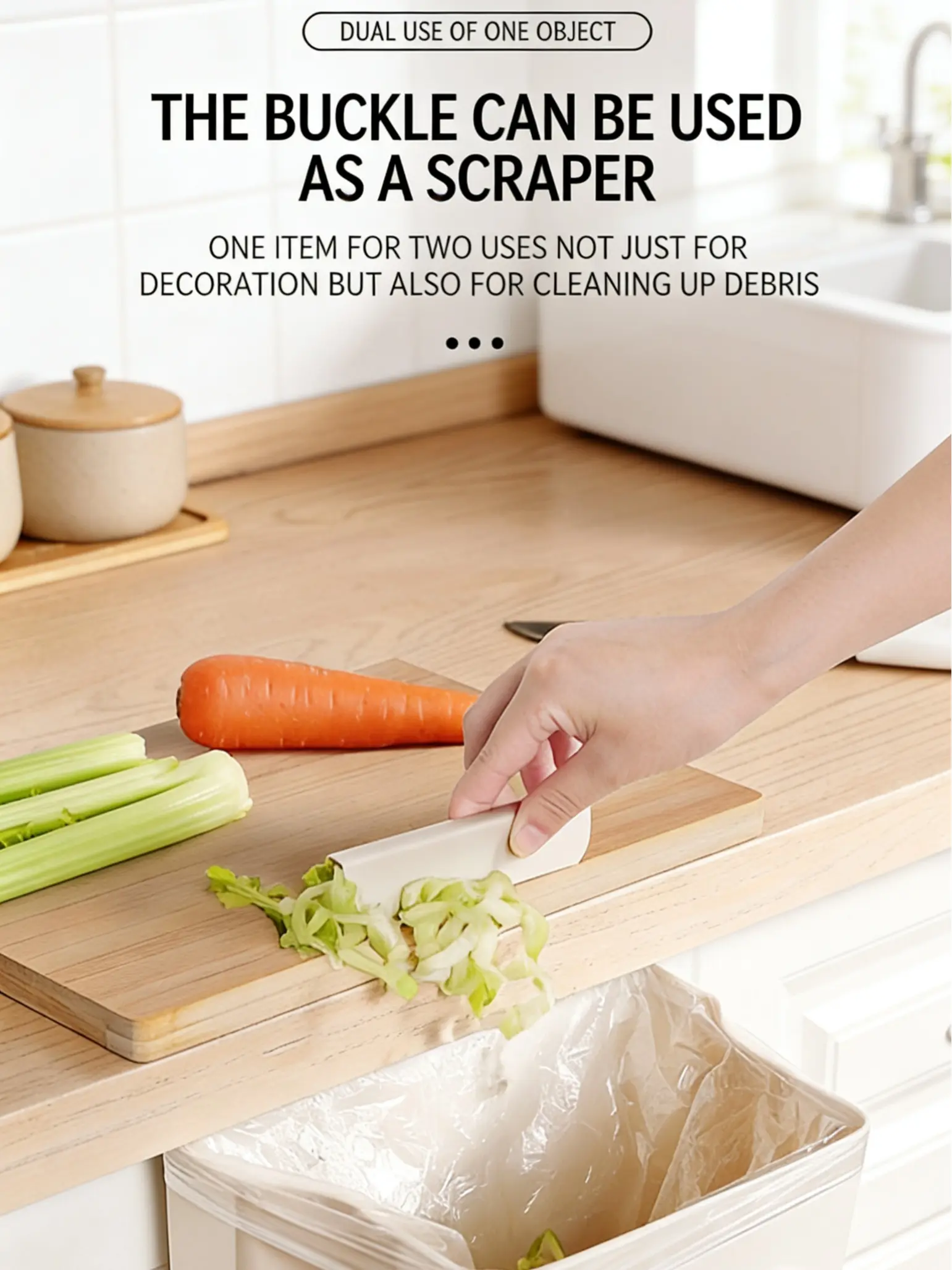 Bonus scraper buckle: Clean food scraps directly into the bin, no mess left