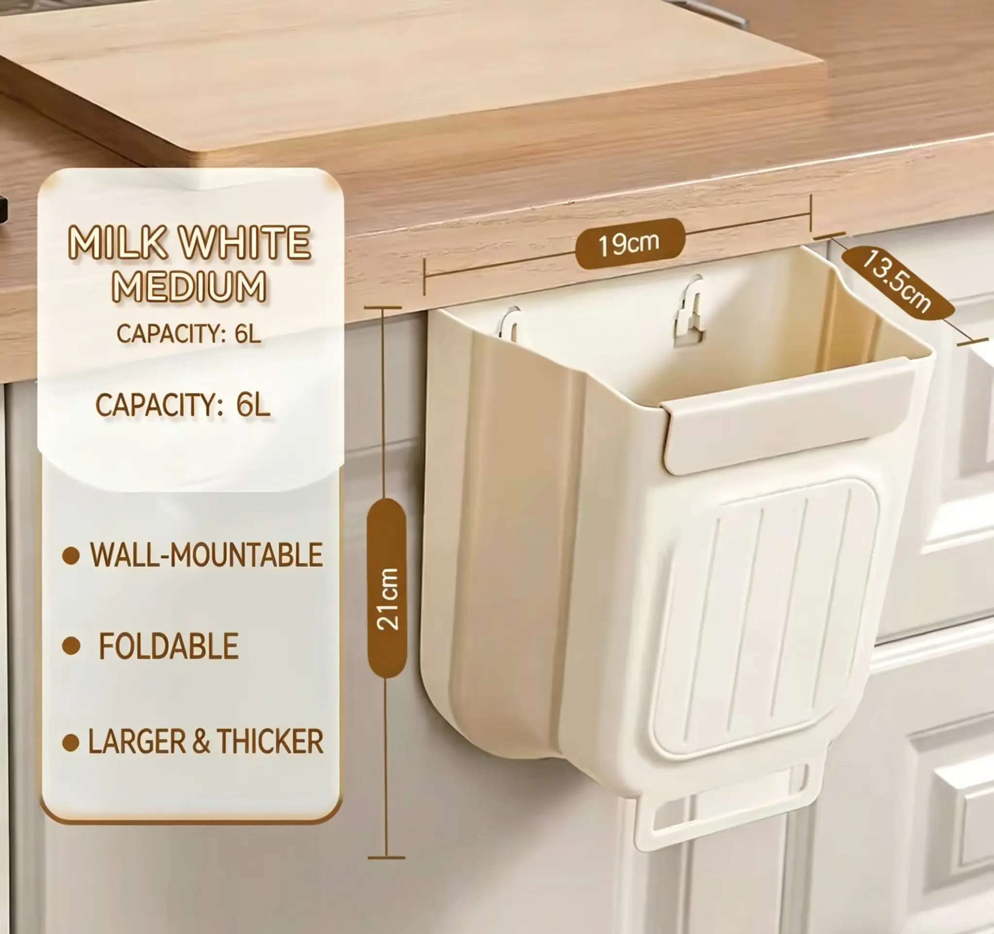 Foldable Kitchen Trash Can, Hanging Cabinet Door Garbage Bin, No Bending Over, Space Saving Wall Mounted Rubbish Bin for Kitchen, Bathroom,Foldable Design for Easy Storage, Durable Plastic Waste Container for Food Scraps, Household Organizer
