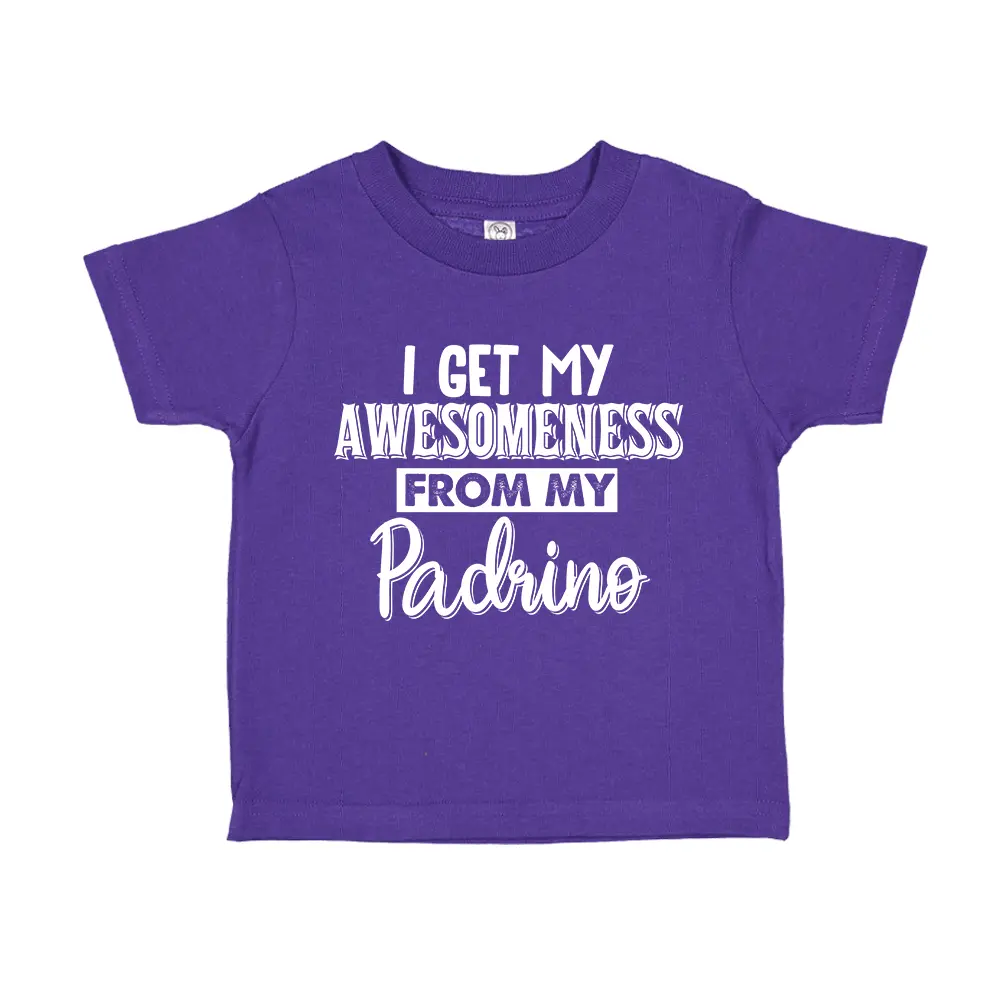 "I Get My Awesomeness From My Padrino" Baby Bodysuit One Piece for the Goddaughter or Godson who takes after their God Daddy! Makes a perfect gift for a Birthday, Baptism, Baby Shower, or just because Padrino wants to spoil their Godchild. Be sure to snap a picture of baby looking cute in this one piece/t-shirt with their Godparent! Feel free to message us with any customization, we are happy to help.