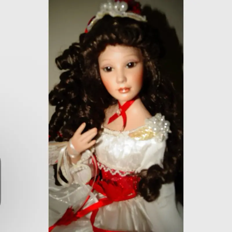 And so, Myra continued her mission, guiding the lost and bringing hope to the hopeless. Though she could not change her past, she would make sure that her light shone brightly for all who needed it. Myra had found her purpose, and her spirit would forever inspire others to rise above their struggles and seek the light. Myras vessel is a stunning 21-inch porcelain doll> She is so beautiful with her gorgeous red and white dress.