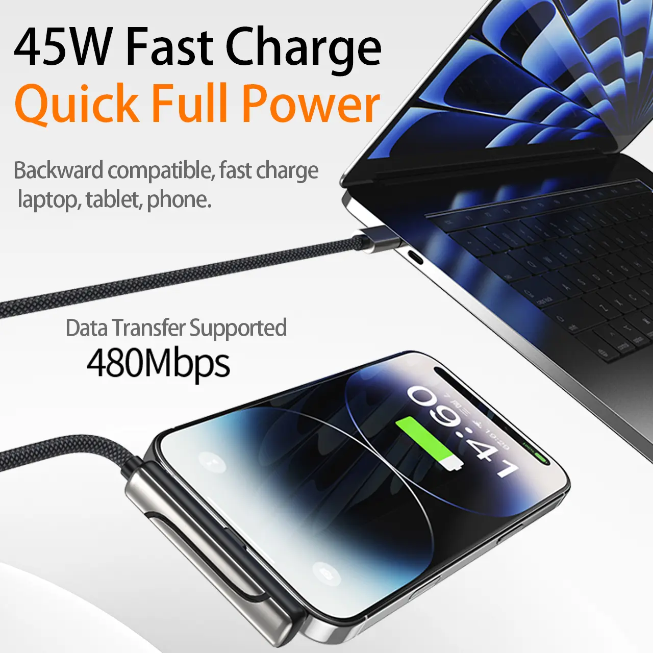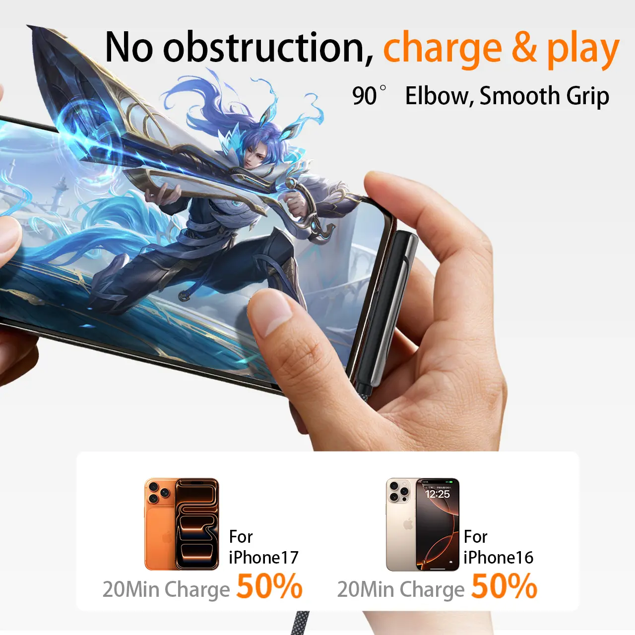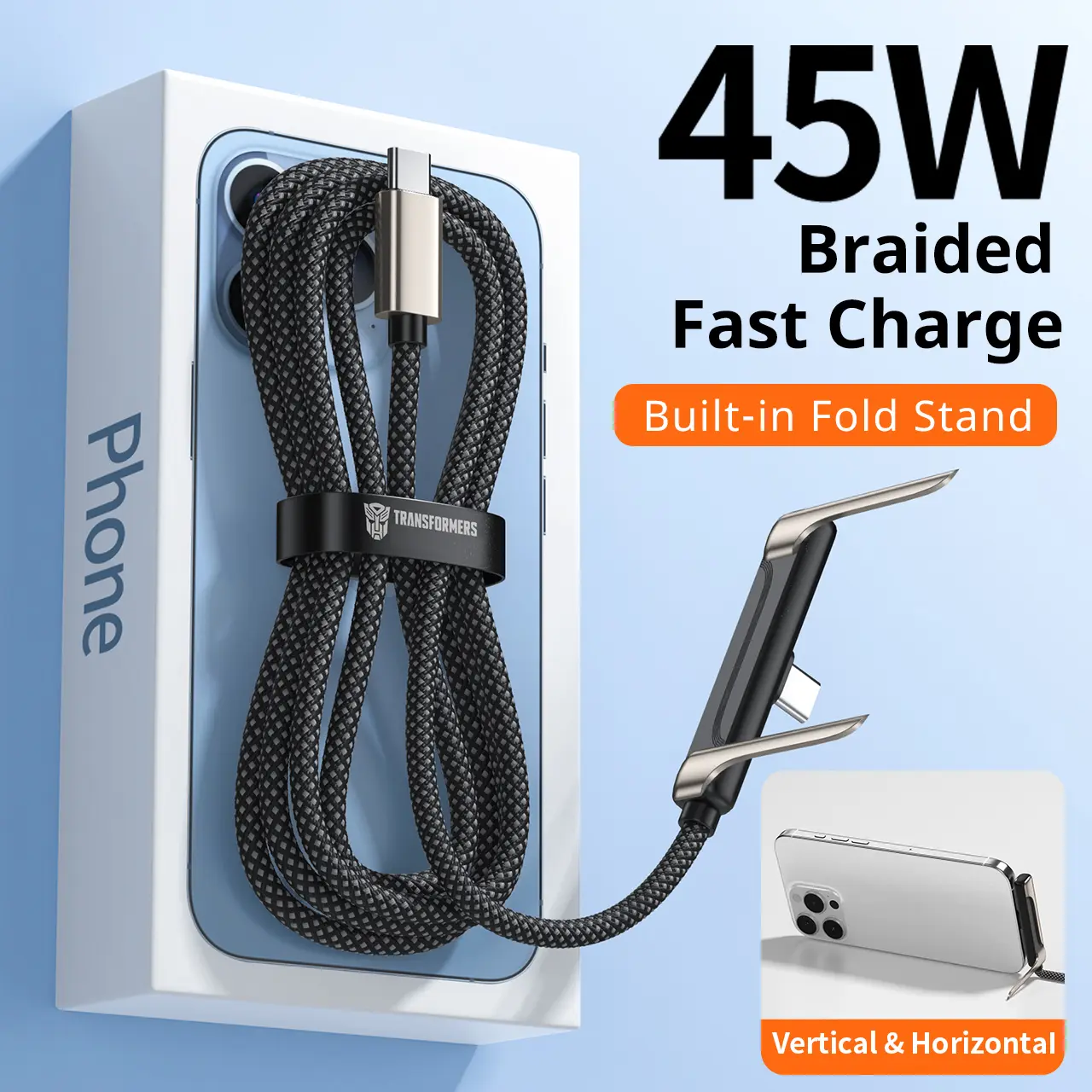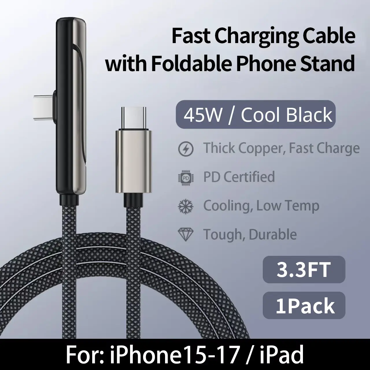 6.6 ft invisible charging cable with hidden stand, compatible with iPhone 15/16/17. Combines charging cable and phone stand into one, supports 45W super fast charging, ideal for gaming, work, and car travel; Samsung Type‑C fast charging cable, black, 3.3