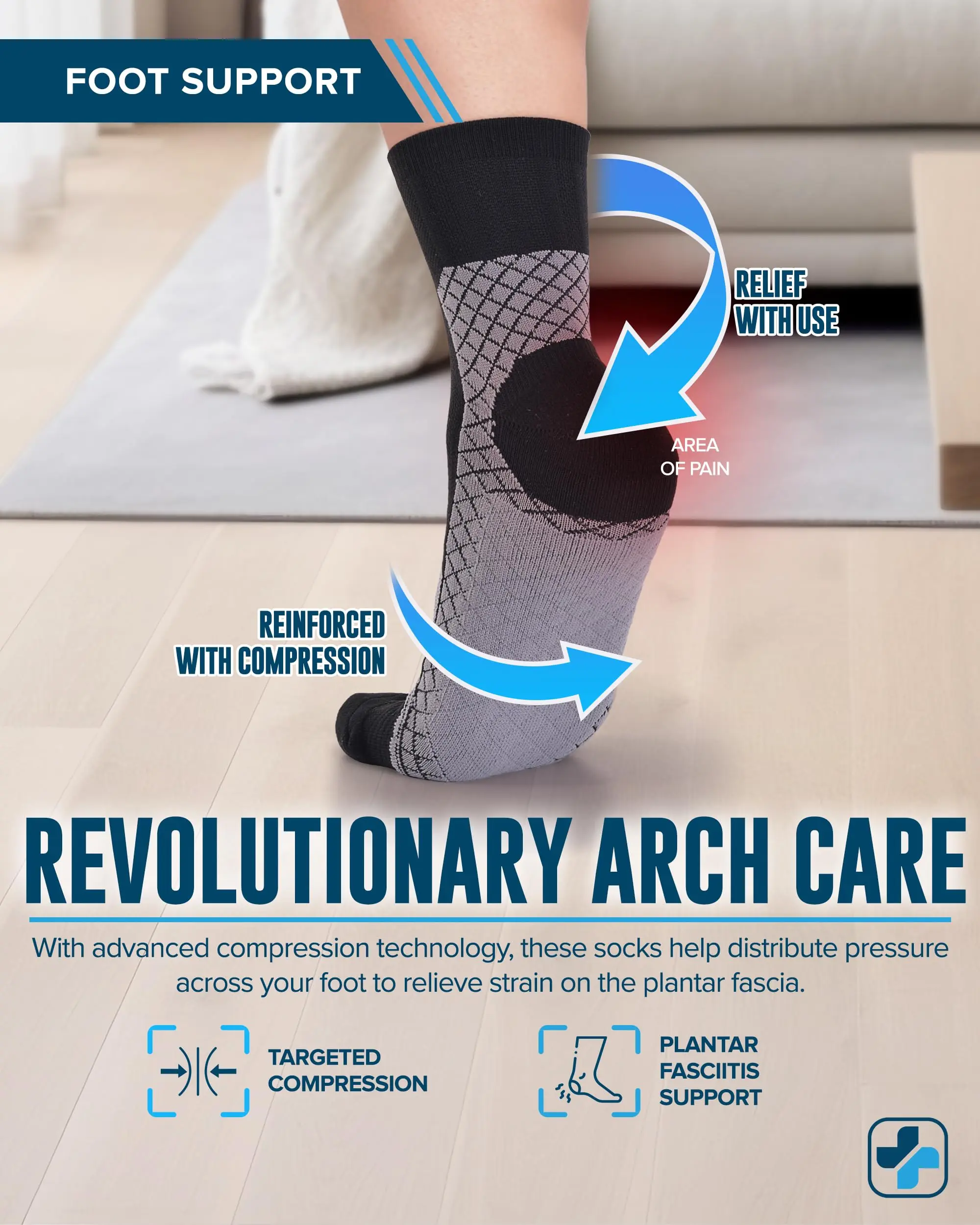 Plantar Fasciitis Relief - Doctor's Select Plantar Fasciitis Compression Socks are infused with targeted compression to help distribute pressure across your foot and relieve plantar fascia strain.