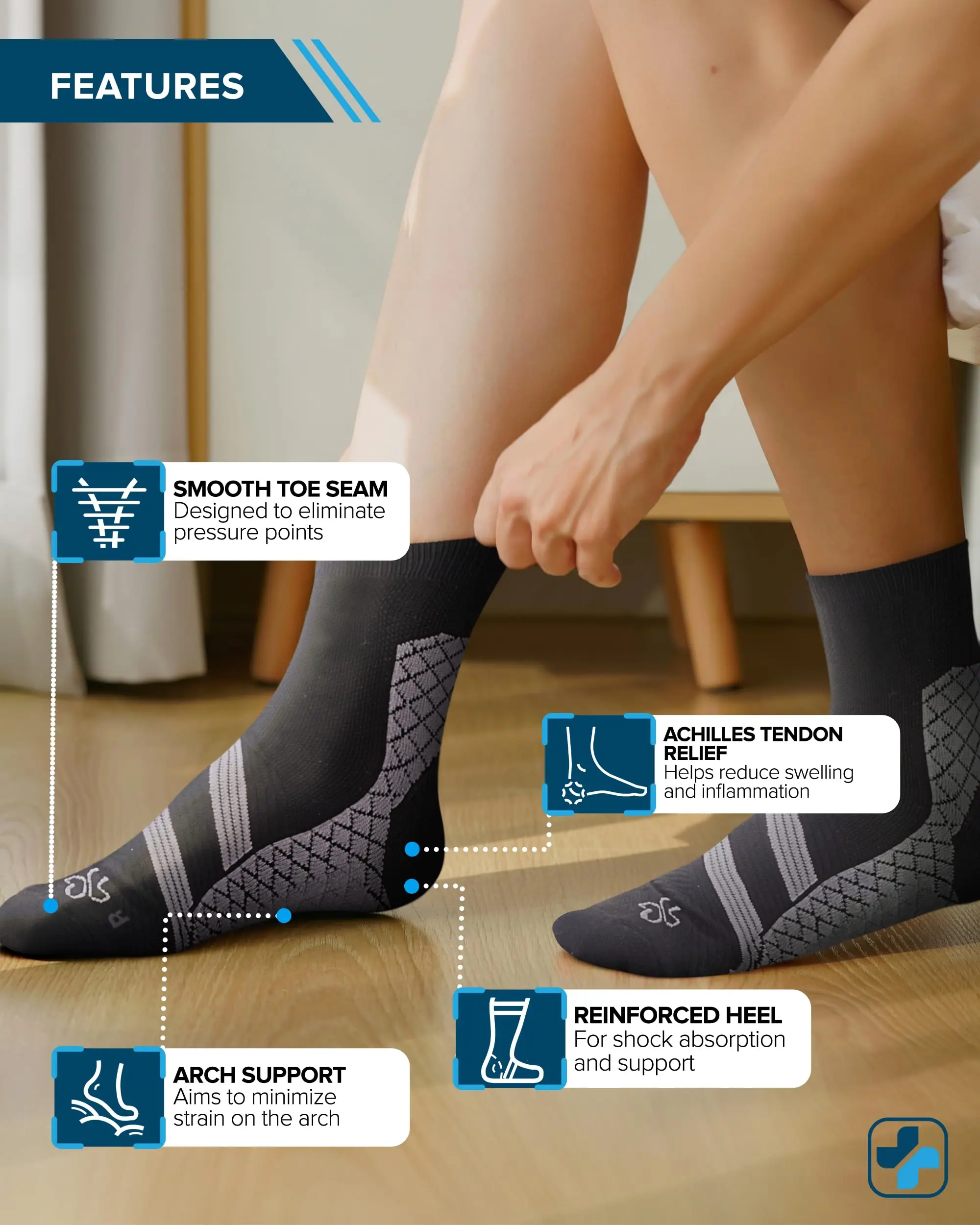 Circulation Boost for Tired Feet - The short compression socks for women and men are designed to prevent fluid build-up, reduce swelling, and promote better circulation, aiding in faster recovery.