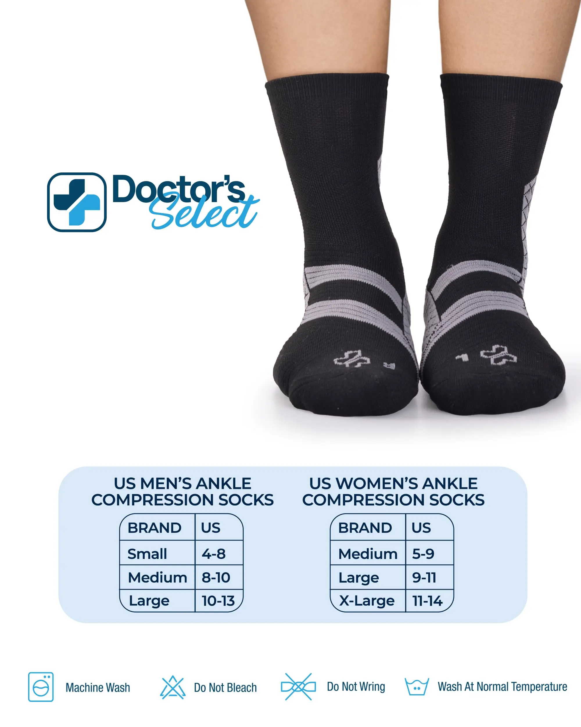 Doctor's Select Compression Socks For Men & Women | Plantar Fasciitis Arch Support | 2 Pairs Black Crew