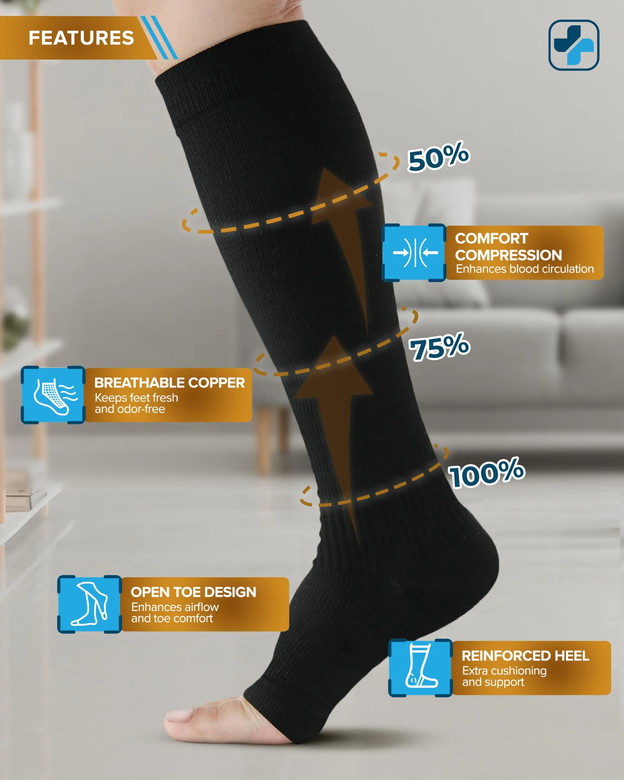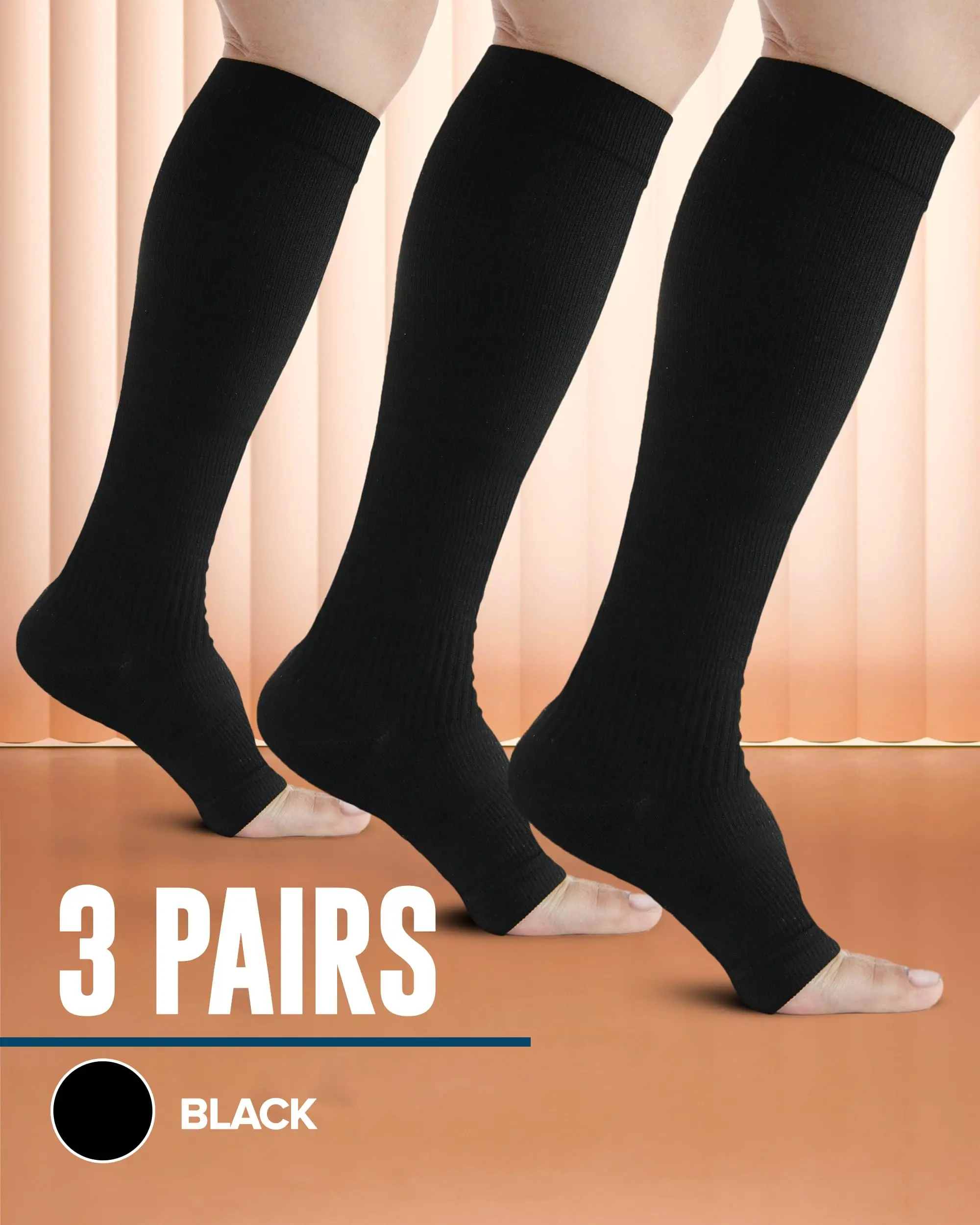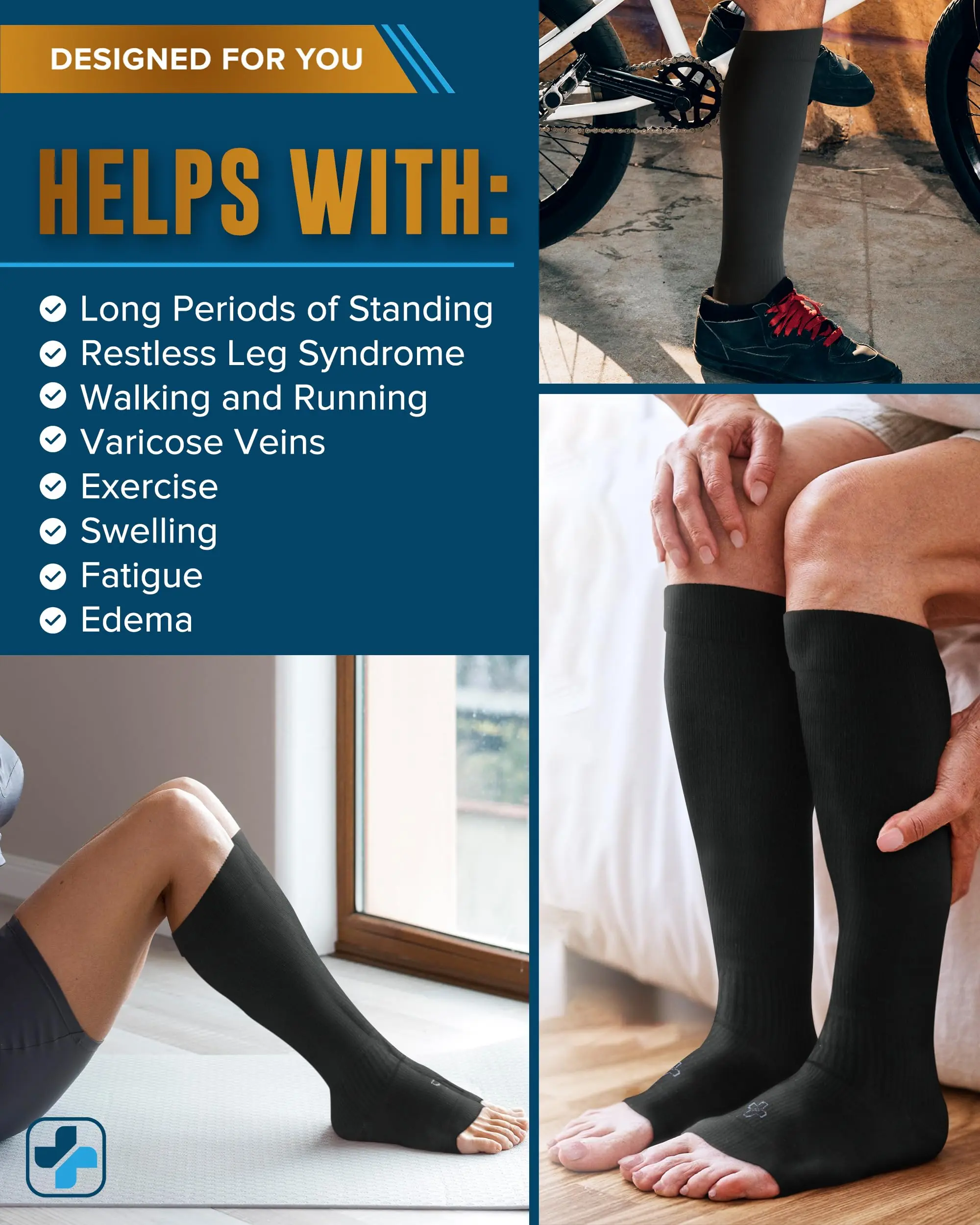 Boost Circulation and Soothe Swelling - With 20-30 mmHg compression, these compression toe socks men energize your legs by improving blood flow, easing swelling, and providing relief from discomfort