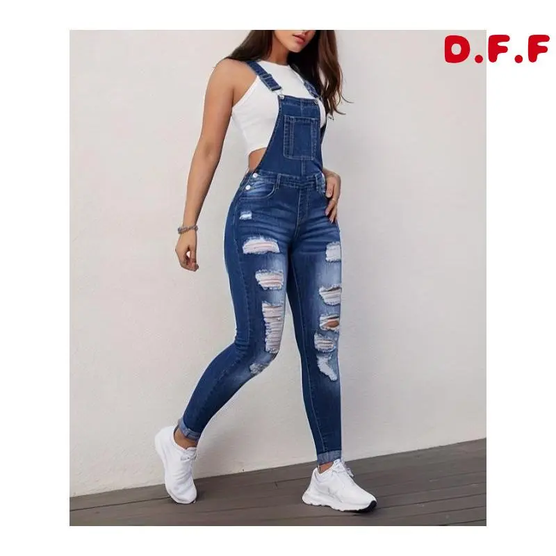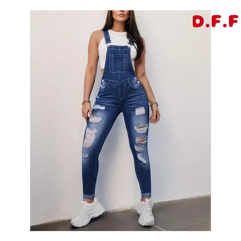 ZhouruVintage Inspired Ripped Distressed Denim Overalls