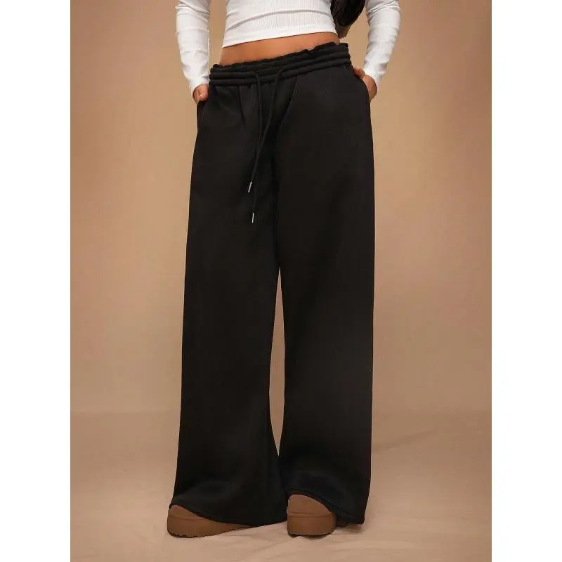 Winter New Warm Lined Thick Casual Versatile High Waist Elastic Waist Loose Wide Leg Sweatpants