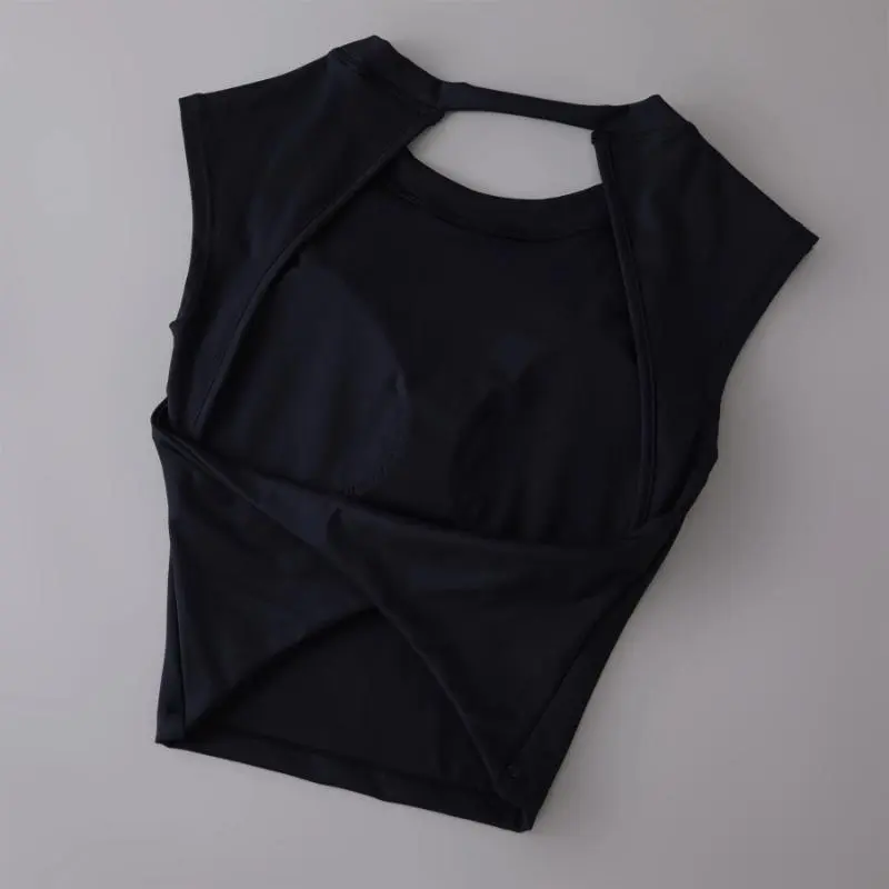 This women's yoga shortsleeved Tshirt is the perfect fusion of sporty and stylish! Builtin fixed chest pads provide stable without worrying about displacement during exercise. The bold backless design is sexy and charming, and it becomes the focus of sports with ease. The slim fit and tailor are cleverly clenched to outline the graceful figure and show charming curves. Breathable and quickdrying fabrics keep your skin dry and comfortable at all times. Whether it is yoga stretching or fitness exercises, you can be confident and full of vitality.