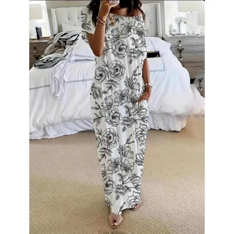 BTFBM Women's Summer 2026 Casual Maxi Dress Lightweight Short Sleeve V Neck Boho Dress with Pockets #Outdoorfun