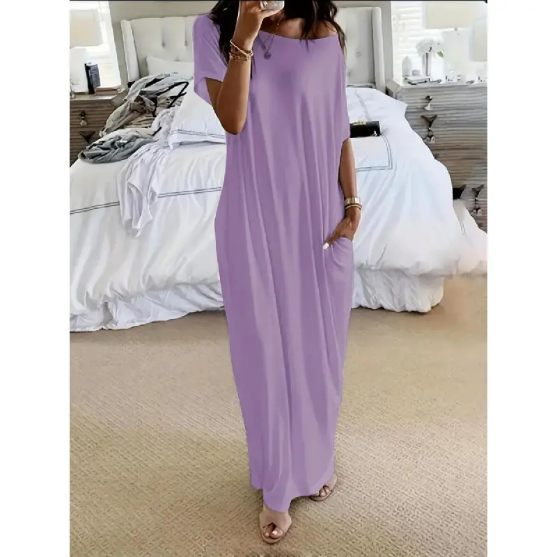 SHOWITTY 2-Pack Women's Casual T-Shirt Loungewear Dresses with Pockets Plus Size Short Sleeves Pajama Dress- Breathable Lightweight Fit for Summer Outings Everyday Wear