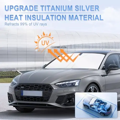·Durability and Heat Insulation: Crafted from durable300T polyester, our car sun shade is designed to last and resist wear over time. It provides superior heat insulation, keeping your car cooler in hot weather conditions. The reflective material ensures effective sunlight blocking and UV protection.