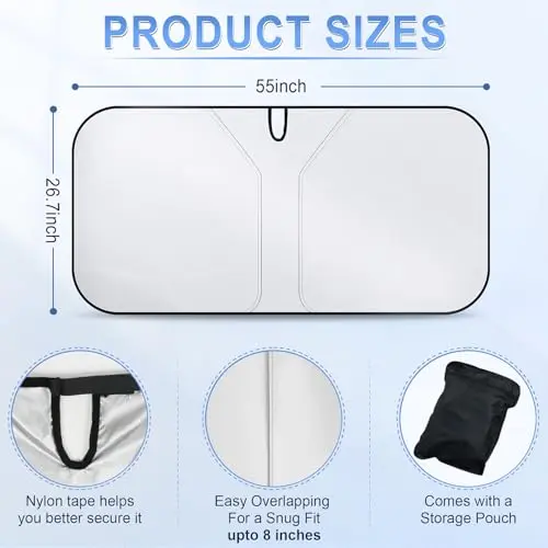 ·Compact and Easy-to-Use Design: With a foldable construction, our windshield sunshade is easy to pop up, install, and fold away. Storage pouch is included for easy portability,Good gift for all friends.Great heat shield interior+accessories for your car.