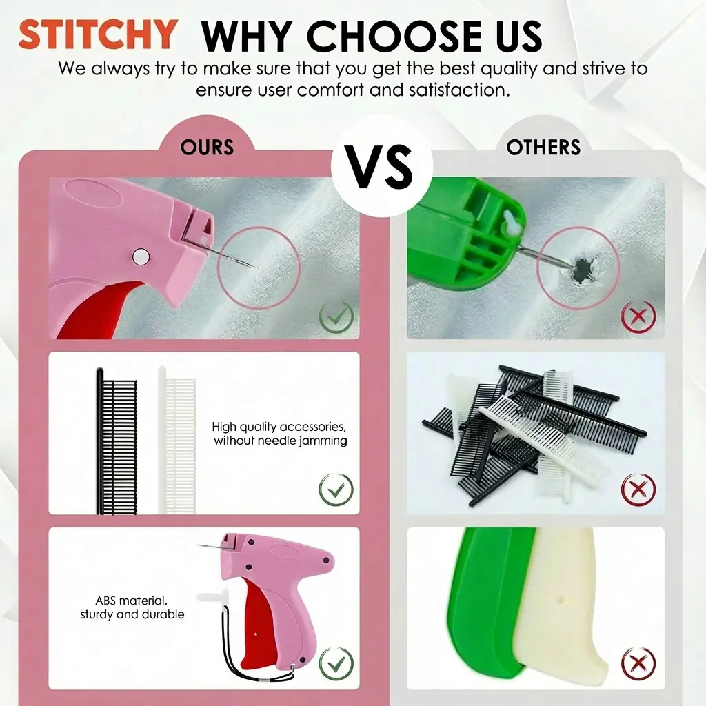 ·Versatile Stitch Gun:Functioning as a versatile stitch tagging gun, it offers 100+1 applications. It can be used for fixing denim garments, hemming pants, repairing seams, altering curtains, sewing patches, and more. This tool is a must-have for both DIY enthusiasts and professional tailors.