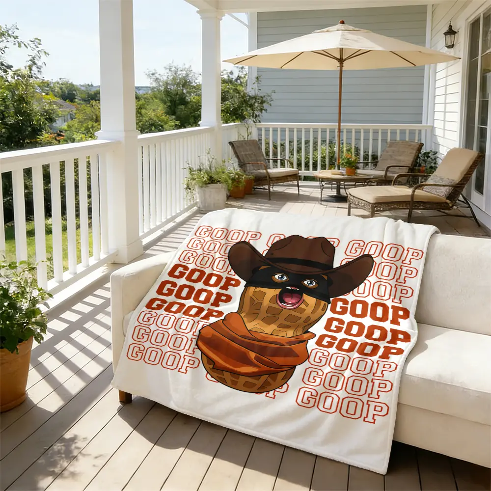 The blanket features a fun "Burnt Peanut Goop" meme design. It's a perfect gift for those who appreciate humor and comfort. Share the joy of this cozy blanket with your loved ones. 🎉