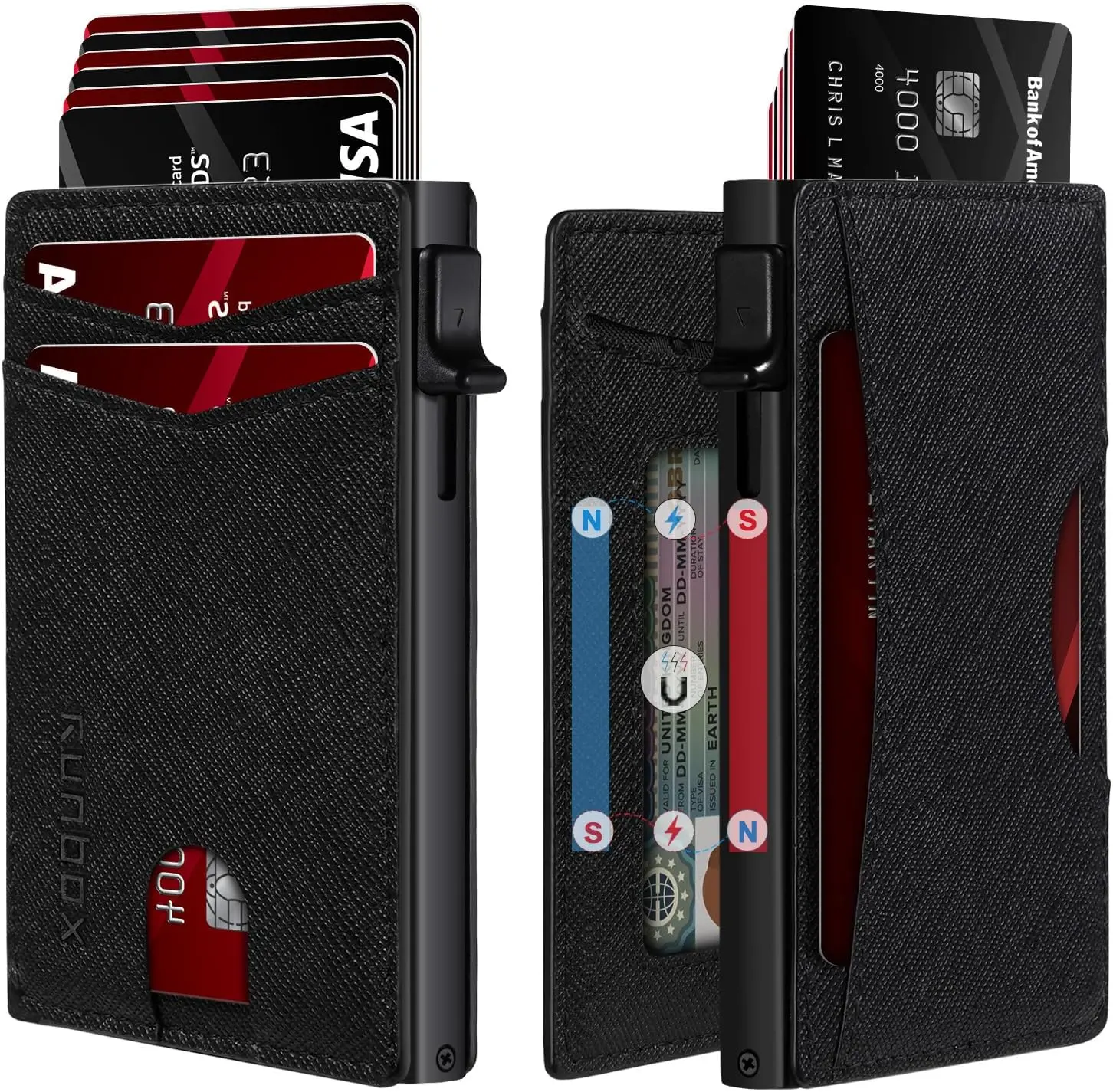 ·Military-Grade RFID/NFC Protection: Built with solid aluminum shielding, this smart wallet blocks 13.56MHz signals to prevent digital theft. Safeguard credit cards and IDs from skimming devices – your data stays secure