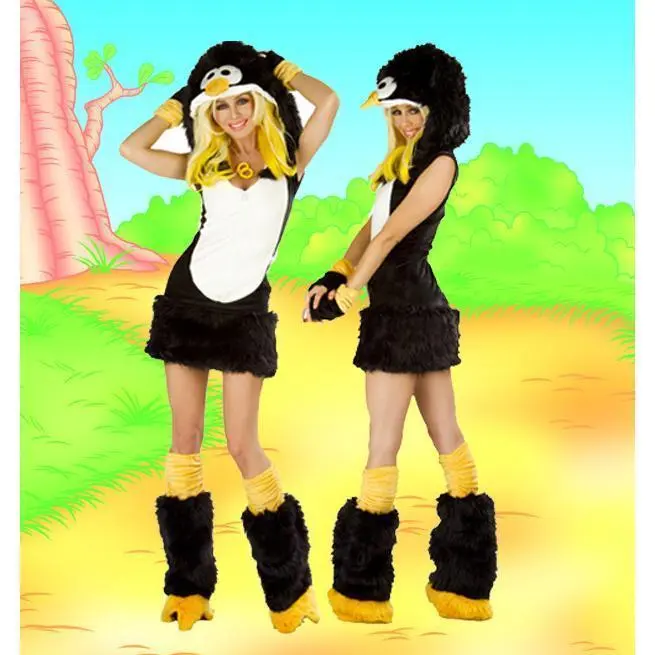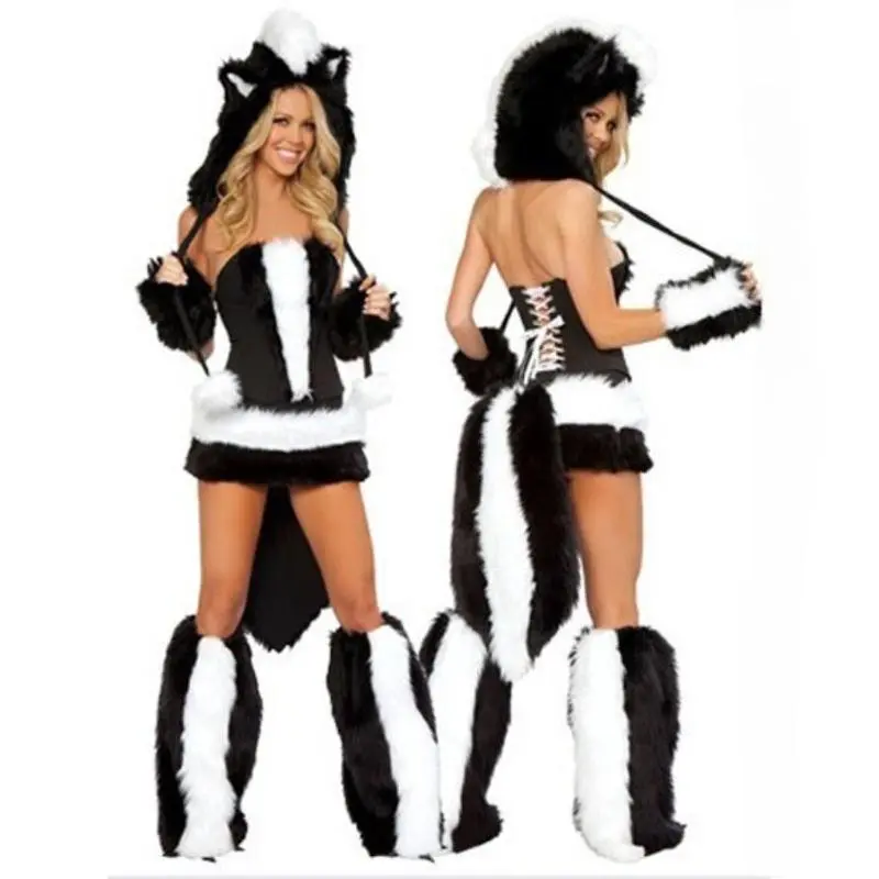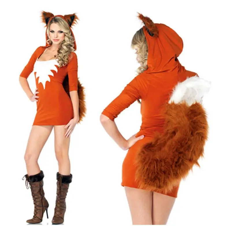 Woman Sexy Animals Costume Bunny White Leopard Fox Roleplay Outfit Hooded Dress with Tail Carnival Halloween Cosplay Party
