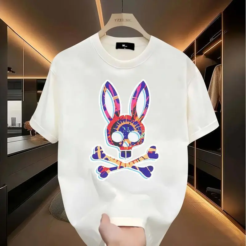 Interesting Bone Rabbit Trendy Men's Casual T-Shirt with Street Art Style, Crewneck, Suitable for All Ages, Cooperation & Celebration