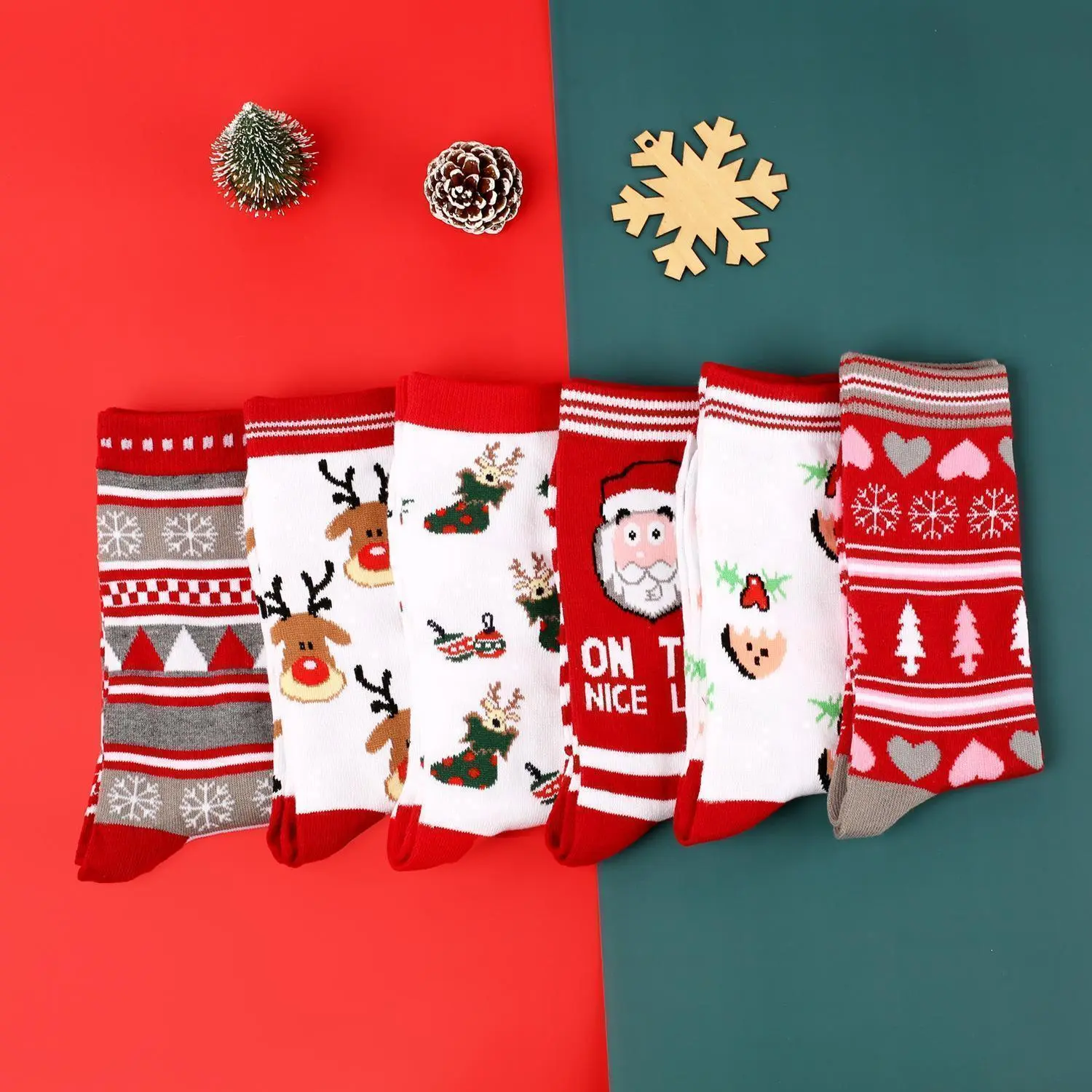 Christmas Mid-Calf Socks for Men Women Santa Claus Autumn Winter Gingerbread Man Cotton Elastic Gift Party Calf-Length Socks