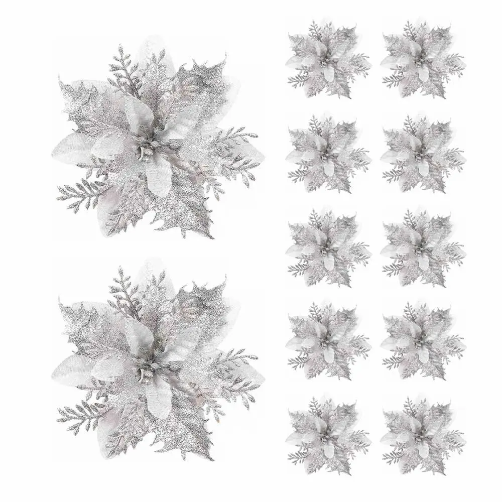 5/10pcs 14.5cm Christmas Flower Ornaments,Pink,Red,Gold,Glitter Artifical Flowers For Christmas Tree,Xmas Decoration For Home