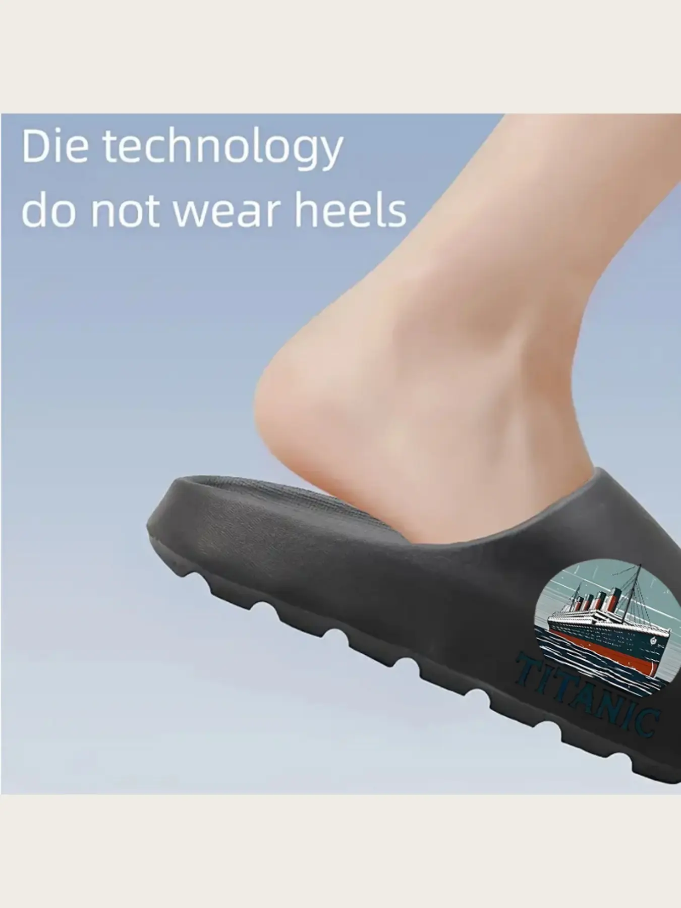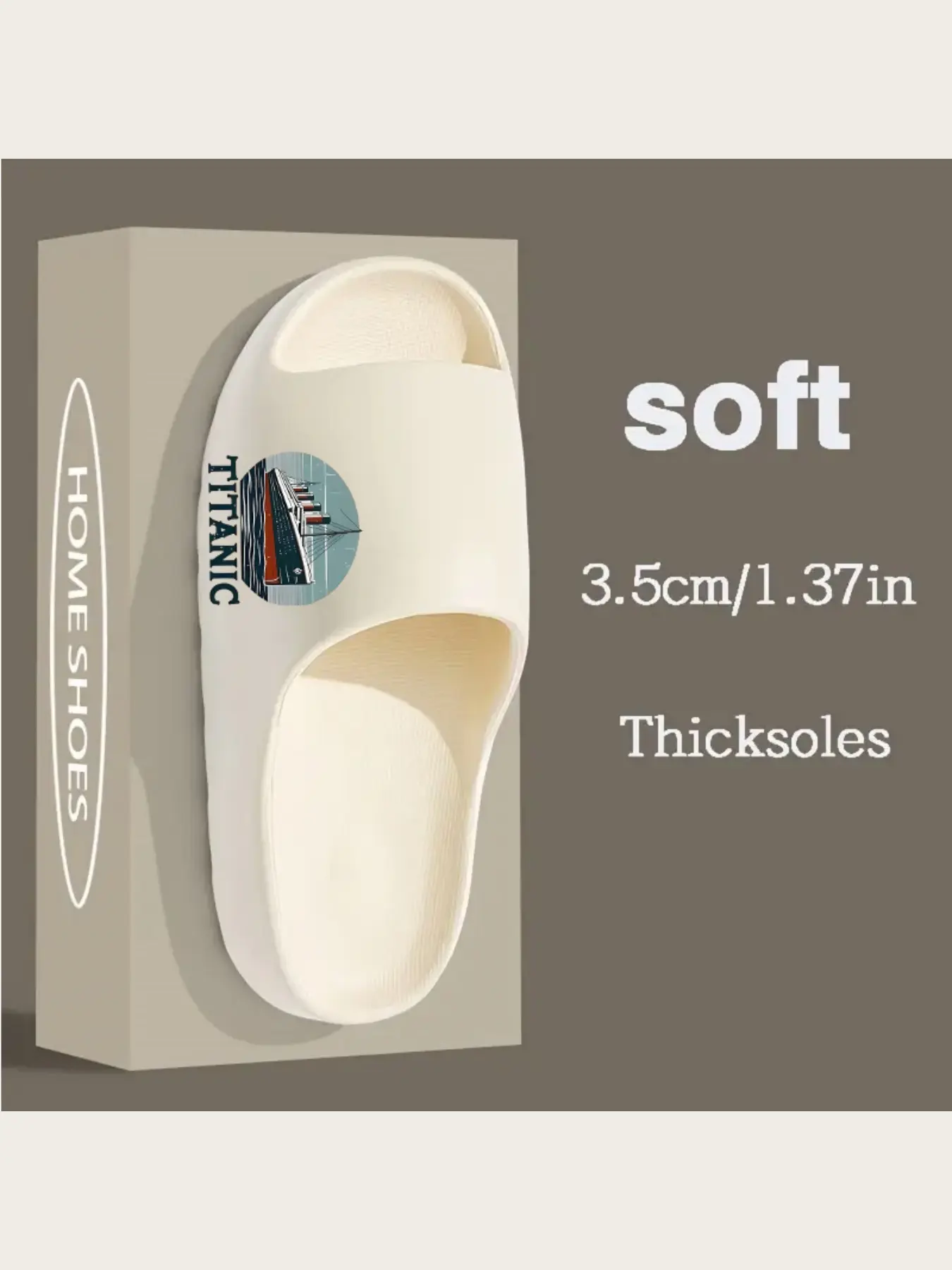 Vintage Titanic Cruise Ship Pattern Slippers Men Women Non-slip Indoor Home Shoes Soft Comfortable Lightweight Summer Beach Sandals Fashion Novelty Footwear