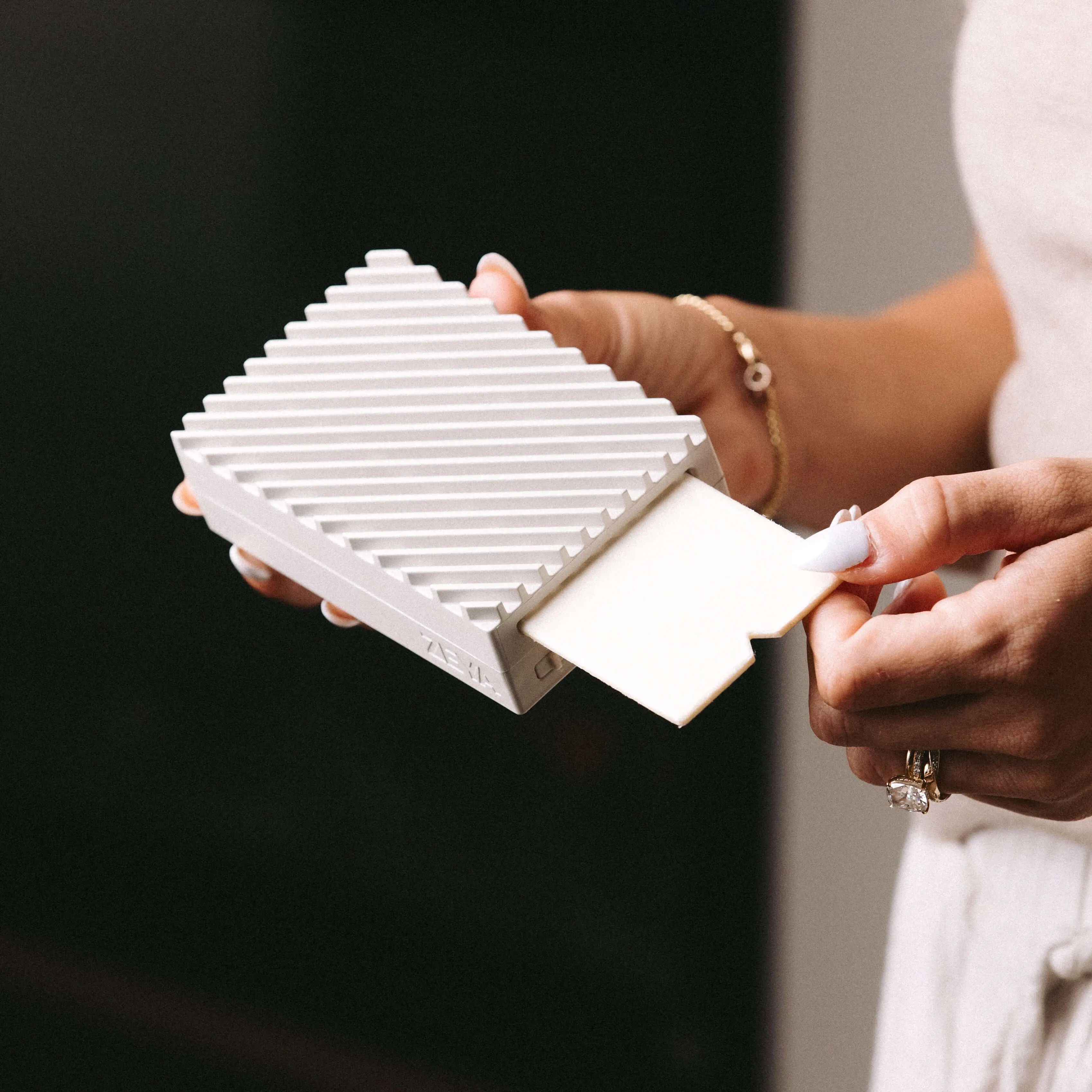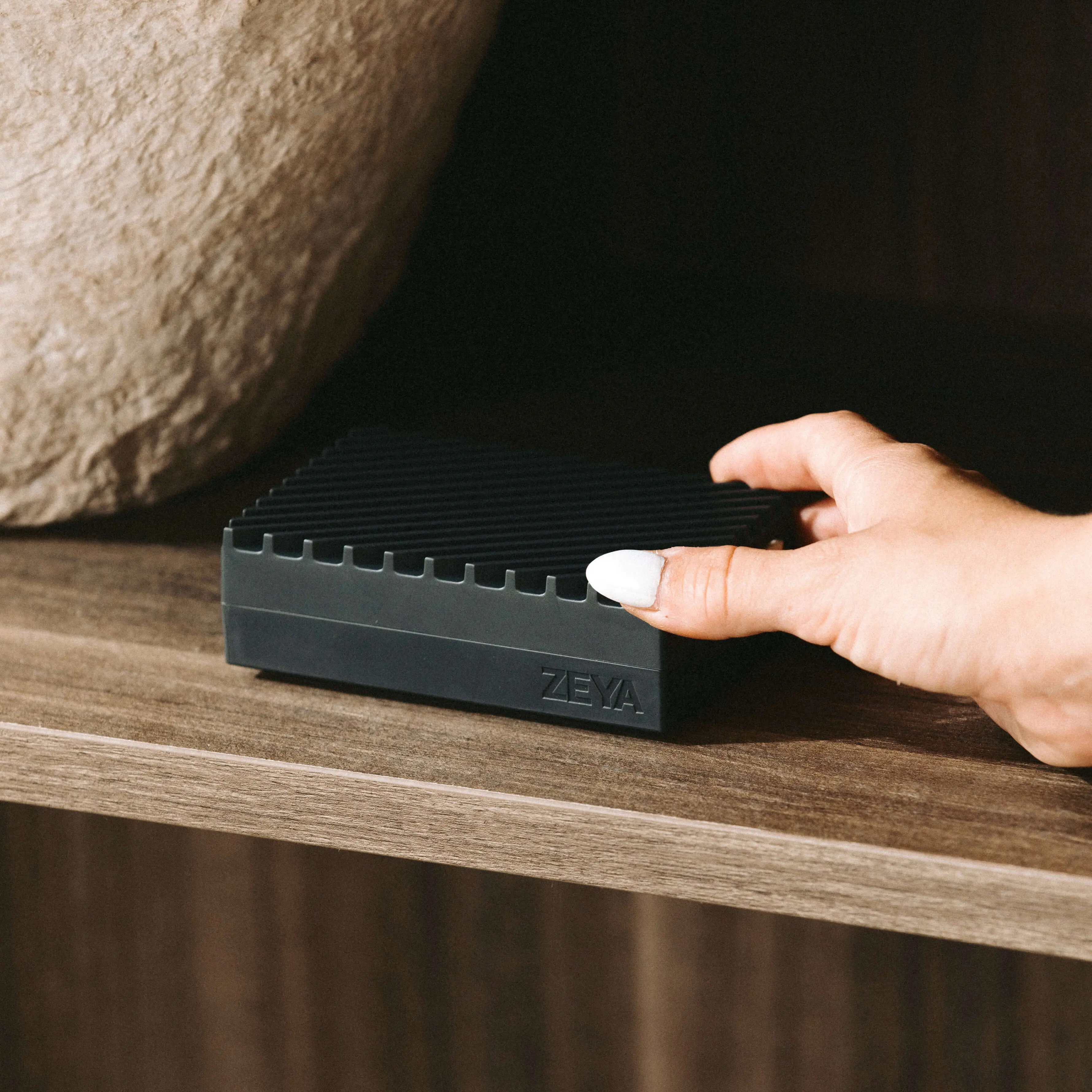 ZEYA is a compact, battery-powered fragrance diffuser designed for intimate spaces like bedrooms, bathrooms, entryways, home offices, or your car. Though small in size, it delivers a consistent fragrance experience when paired with our signature Fragrance Cards.