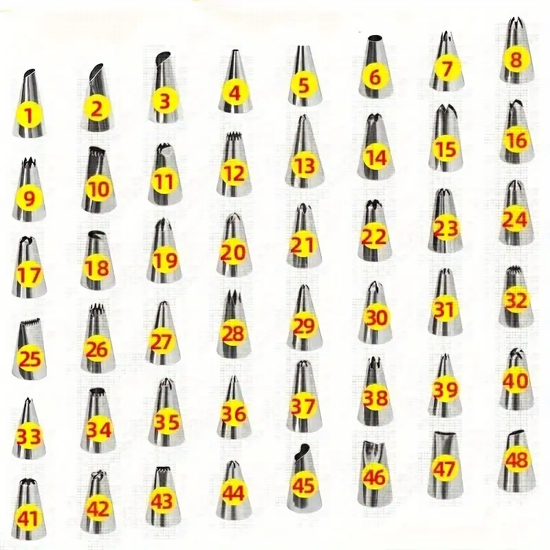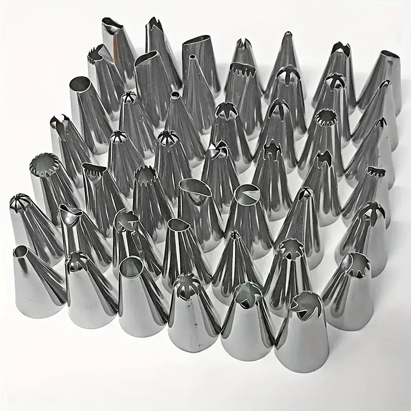 [Stainless Icing Tips] 48pcs Stainless Steel Icing and Piping Tips Set, DIY Cake Decorating Tools, Pastry Cream Nozzles for Baking, Kitchen Accessories