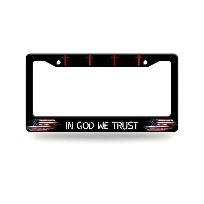 In Glock we Trust cross,Stainless Steel U.S. License Plate Frame, car accessories, Black