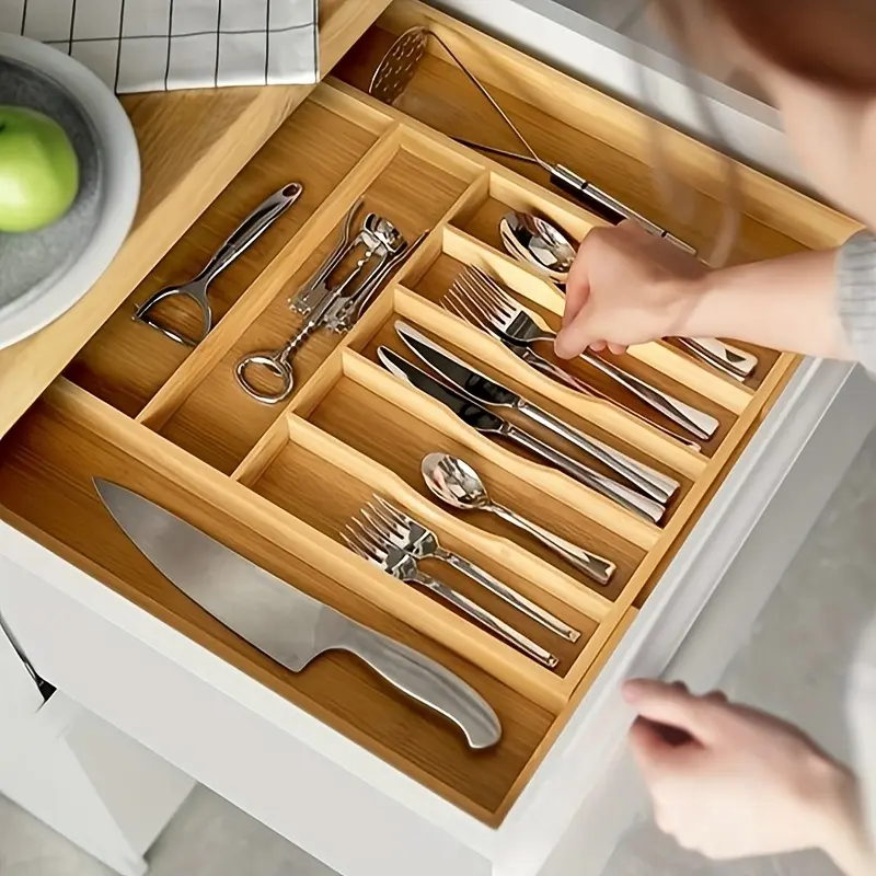 A Wooden Storage Box for Utensils, Including a Knife, Fork, Chopsticks, And Spoon, Designed As a Built-In Drawer for a Japanese-Style Kitchen Cabinet