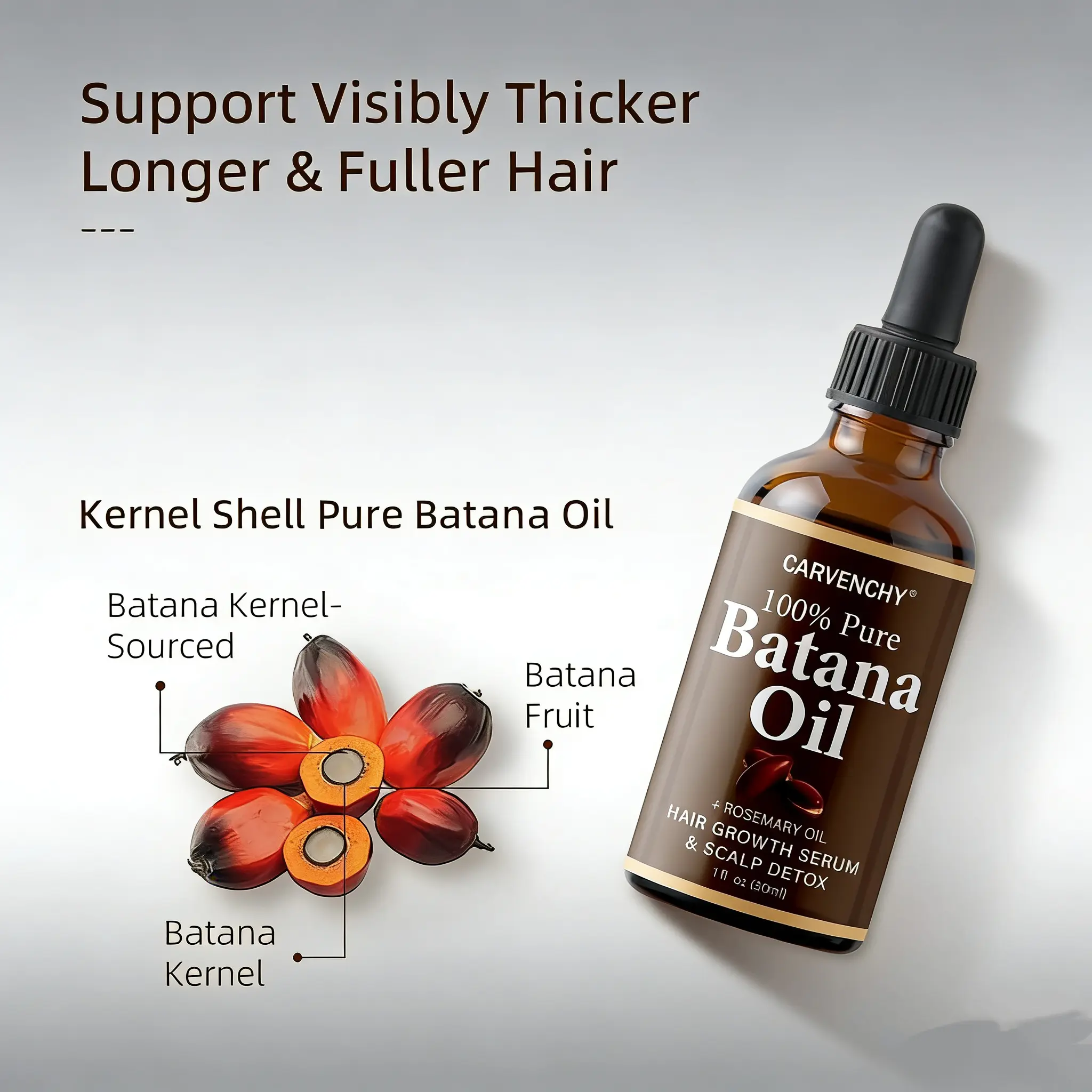 Deeply Nourish & Transform: The nutrients in Batanaessential oil can deeply nourish hair, provide sufficientnutrition for hair, improve hair quality.