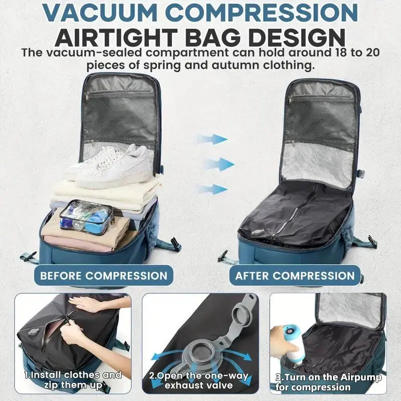 Three-piece vacuum travel bag set, equipped with detachable vacuum bag, electric air pump, large-capacity backpack, detachable design, multi-layer pockets, casual style, Space Saving Bag, Travel Organizer Bag