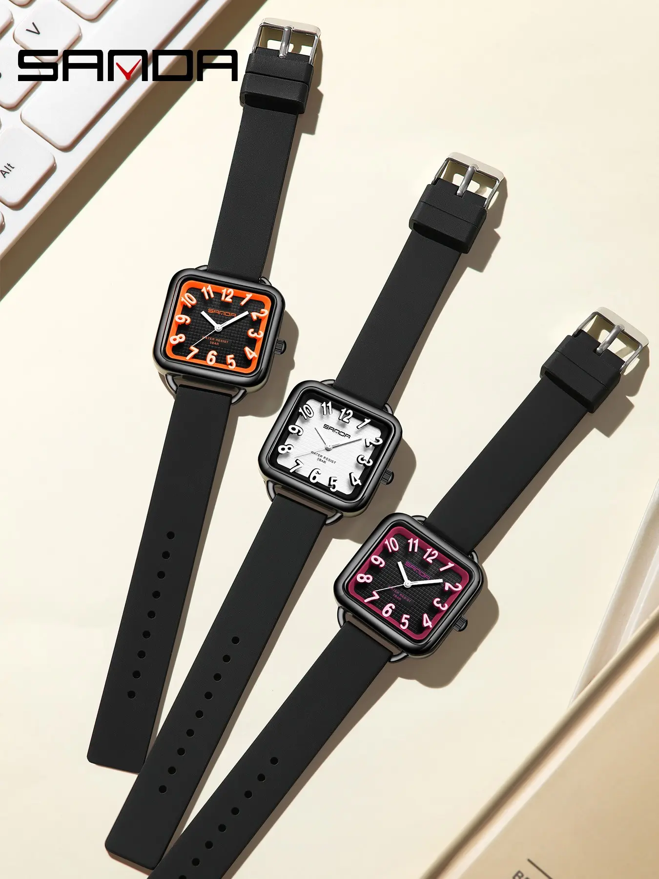 1Pcs brand fashionable square women's watch waterproof, soft and comfortable silicone strap women's watch, elegant watch suitable for women, casual women's watch, quartz simulated lady watch, suitable for mothers, daughters, female friends' birthday gifts